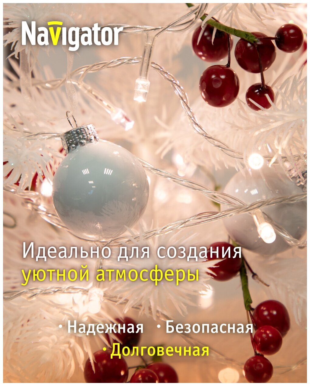 Гирлянда Нить Navigator 61 800, 3м, теплый свет, прозрачный провод, IP20, на батарейках информация: