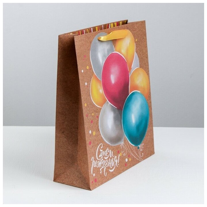 Пакет подарочный крафтовый «Весёлый праздник», 40 × 31 × 11.5 см информация: