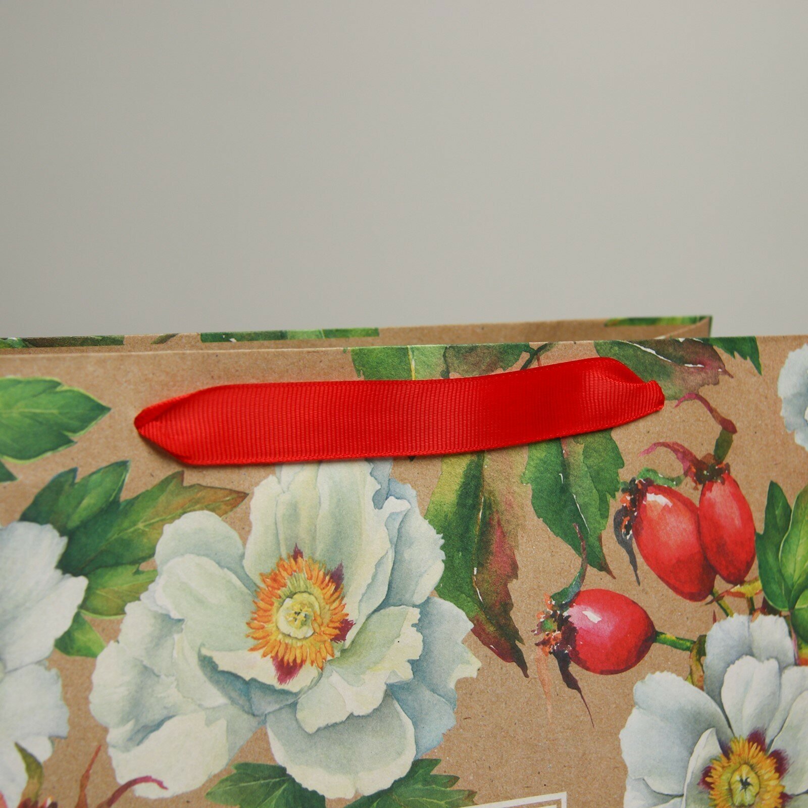 Пакет подарочный крафтовый с ручками Арт Узор с принтом 'Пионы', 100 г/м2, 25*22*12 см 203 ₽