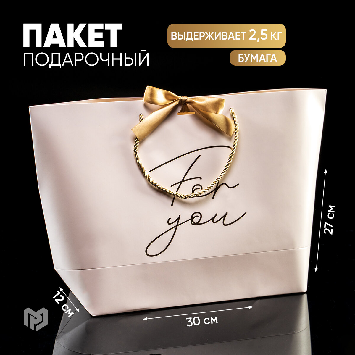 Пакет подарочный с бантом «For you», 30 х 27 х 12 см информация: