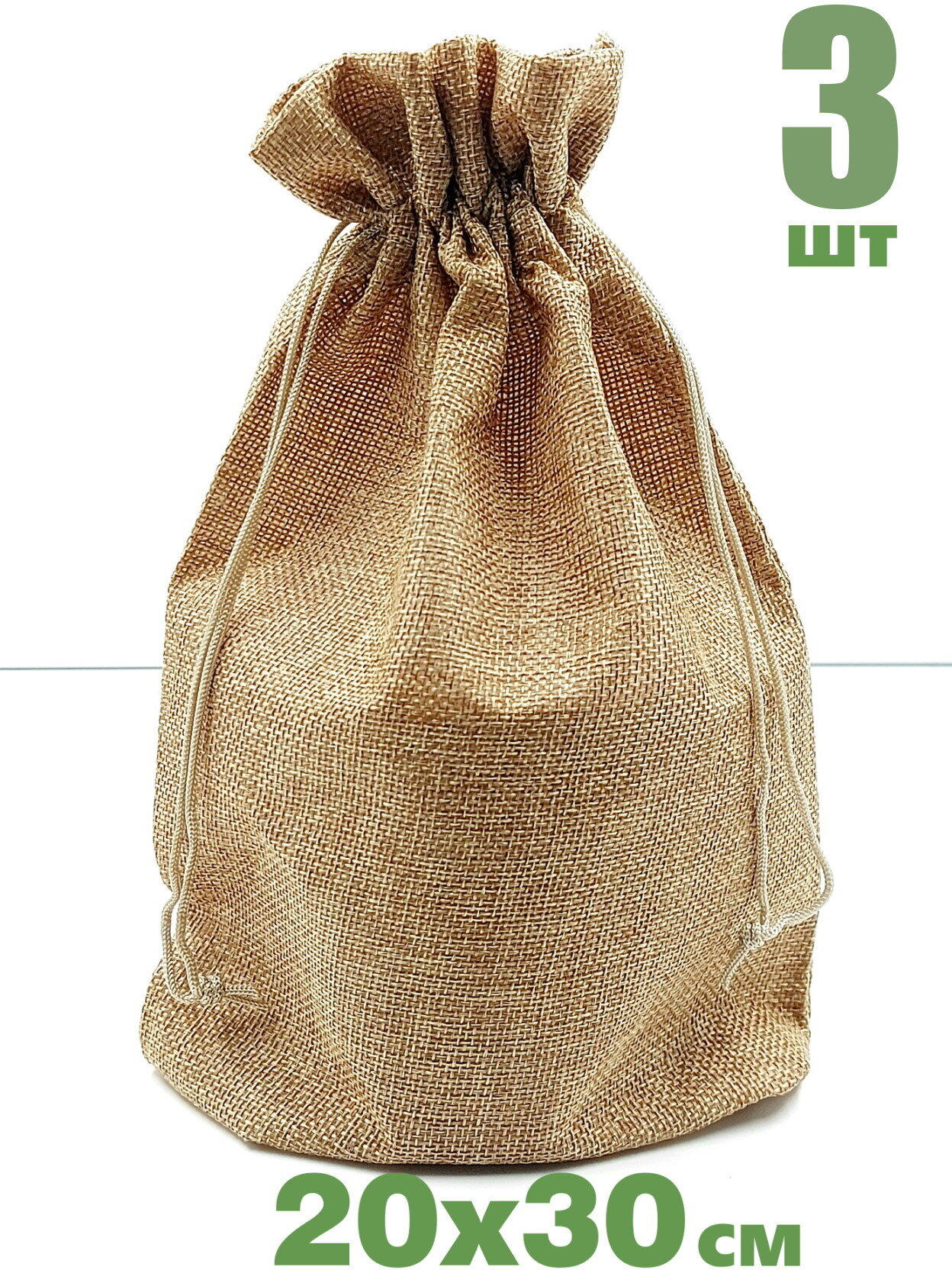 10 цен на Мешочек подарочный льняной ( иск.) / для хранения / 3 шт 20х30 см бежевый