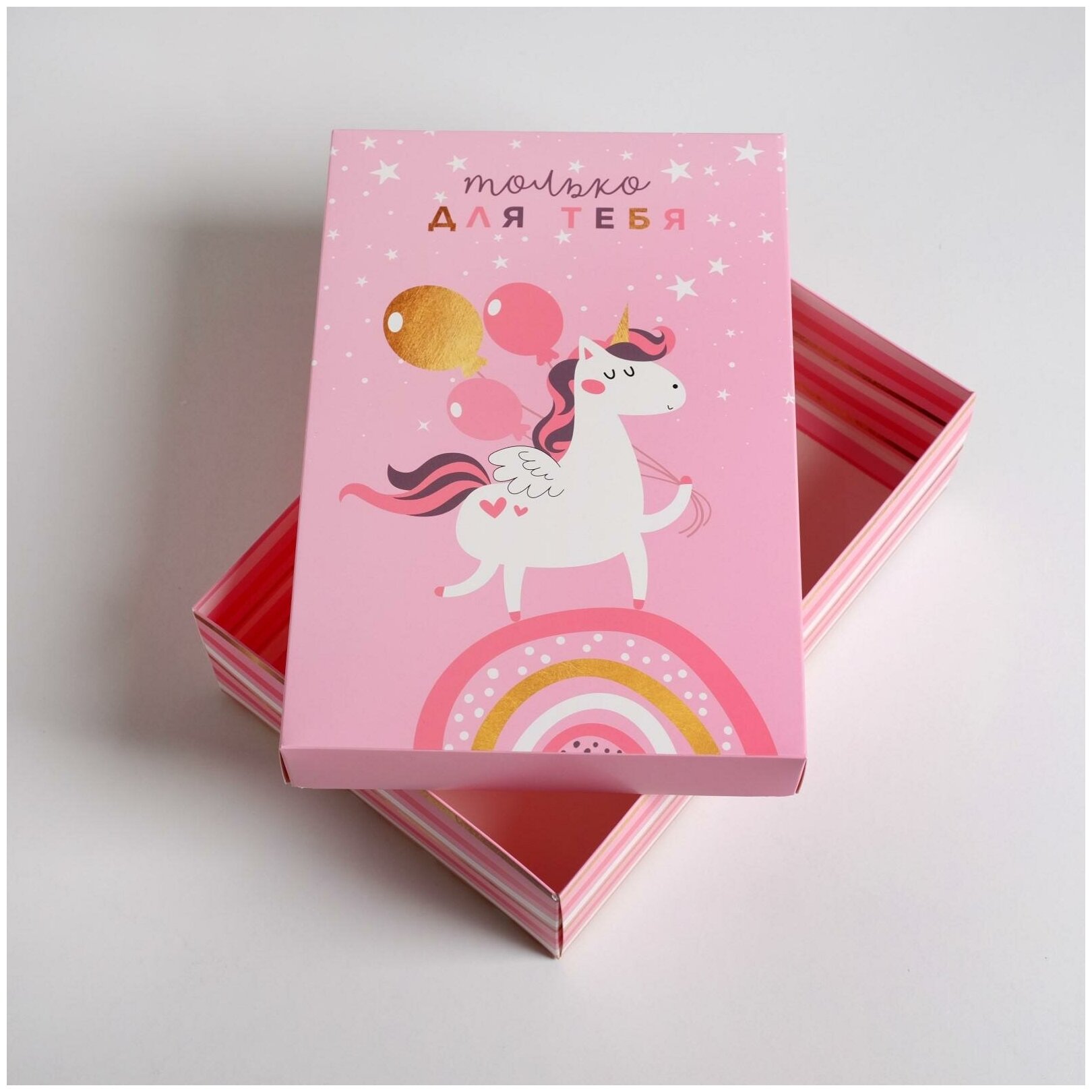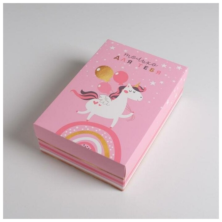 Коробка подарочная «Единорог», 21 × 15 × 7 см, розовый, картон, для упаковки подарка 76 ₽