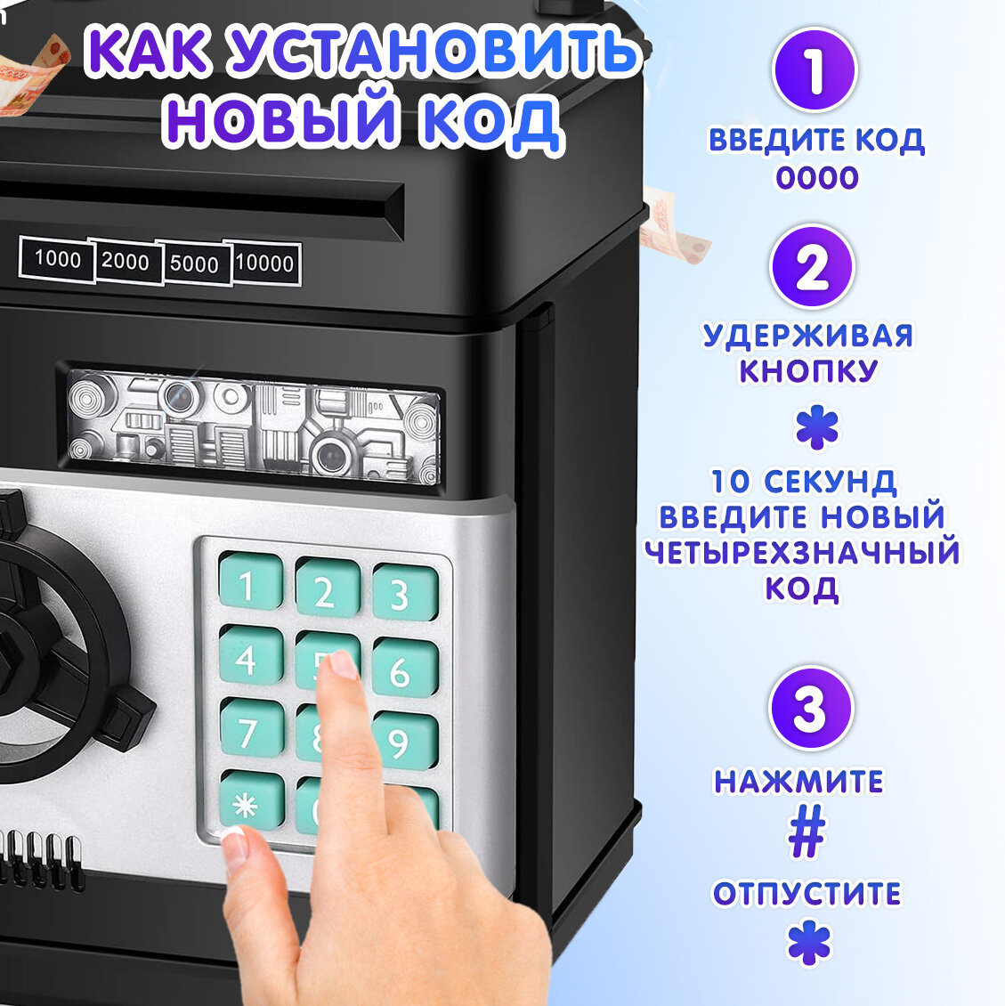 Отзывы на Копилка Сейф пластиковая эврика, детская, для монет и купюр, мелочей, денег, подарочная (черный) 23 февраля, 8 марта