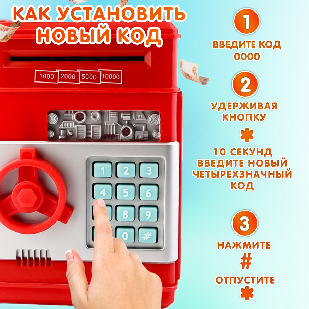 Отзывы на Копилка Сейф пластиковая эврика, детская, для монет и купюр, мелочей, денег, подарочная (красный) 23 февраля, 8 марта