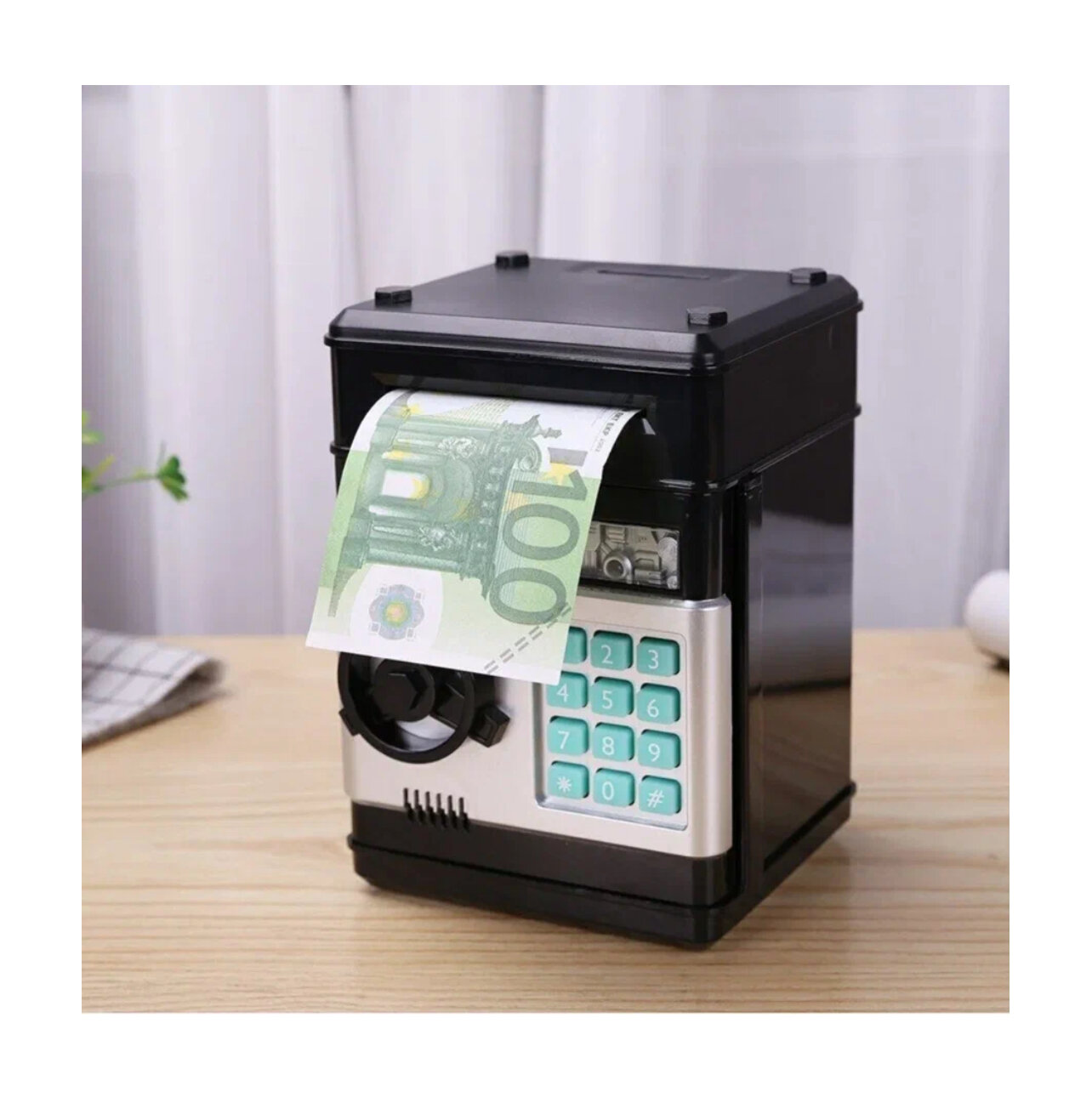 Копилка сейф электронная для денег с кодовым замком и купюроприемником, чёрная информация: