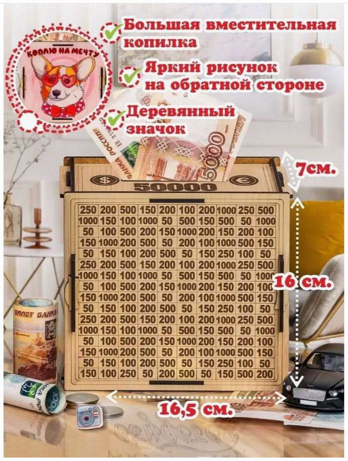 10 цен на Копилка деревянная самосборная Корги 50000