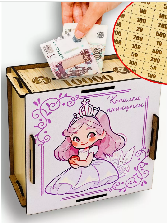 10 цен на Копилка деревянная накопи 10000 Принцесса