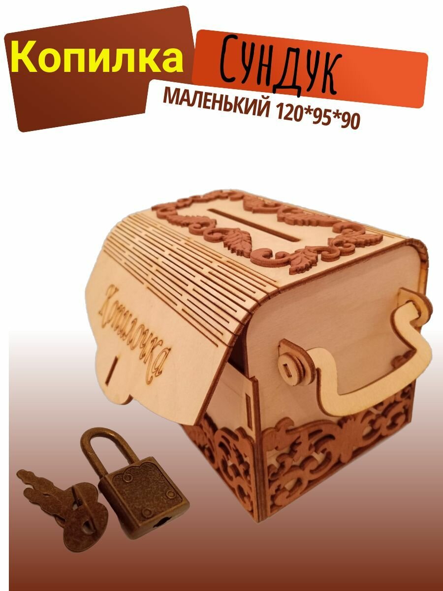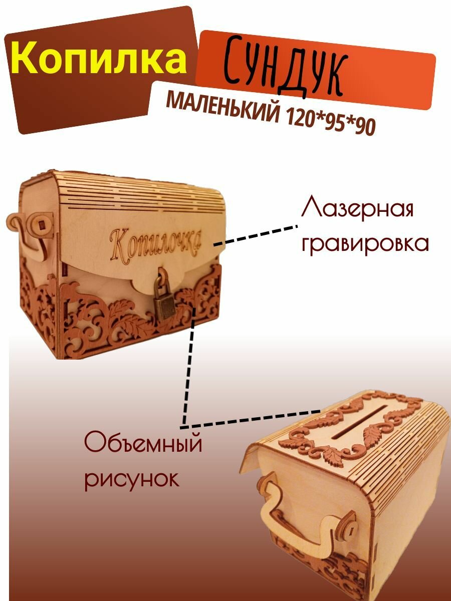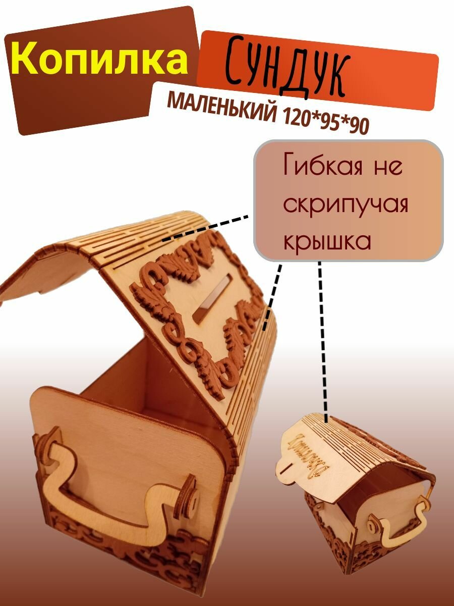 10 цен на Копилка для денег "Копилочка" в форме сундучка 120 х 95 х 90 мм из дерева, с вензелями