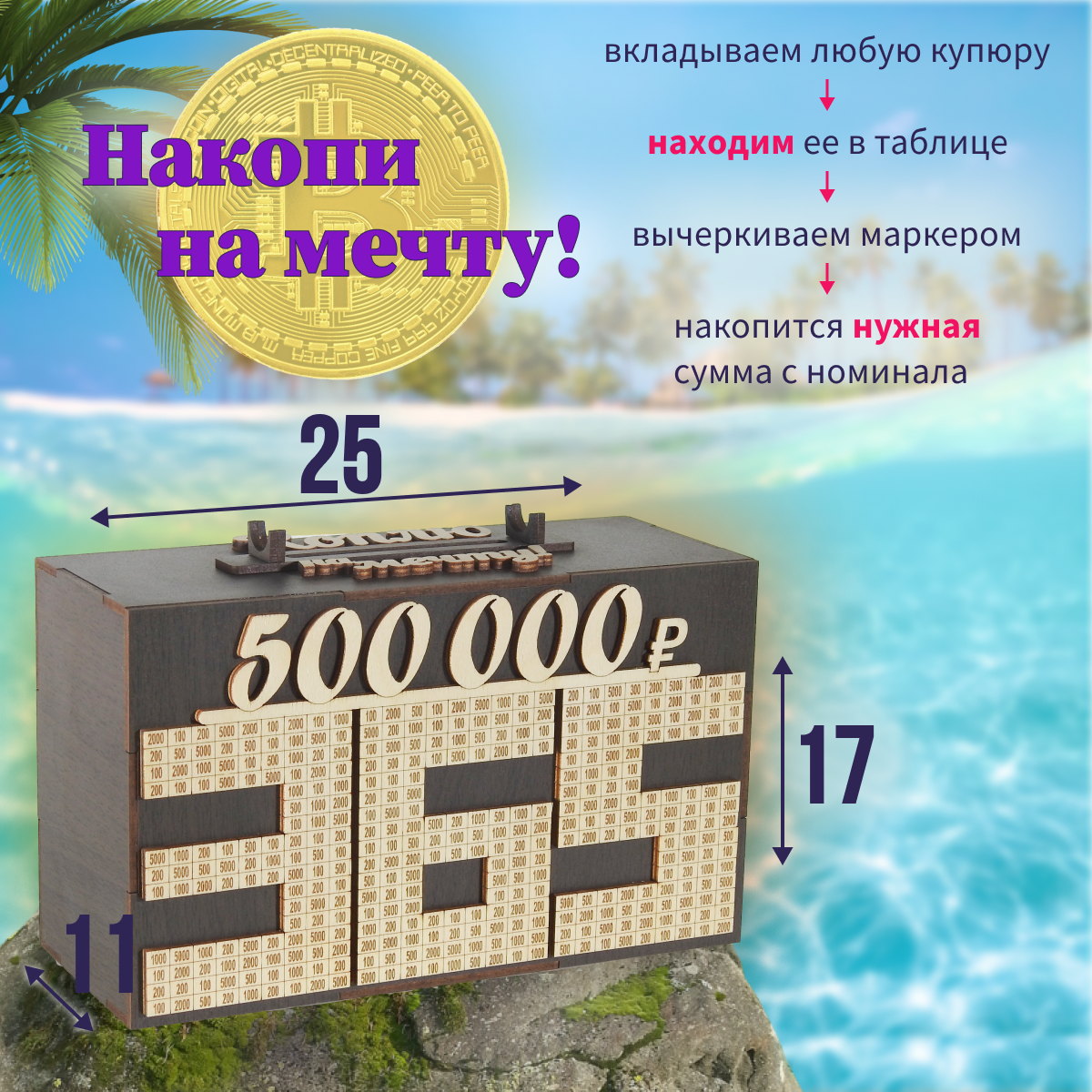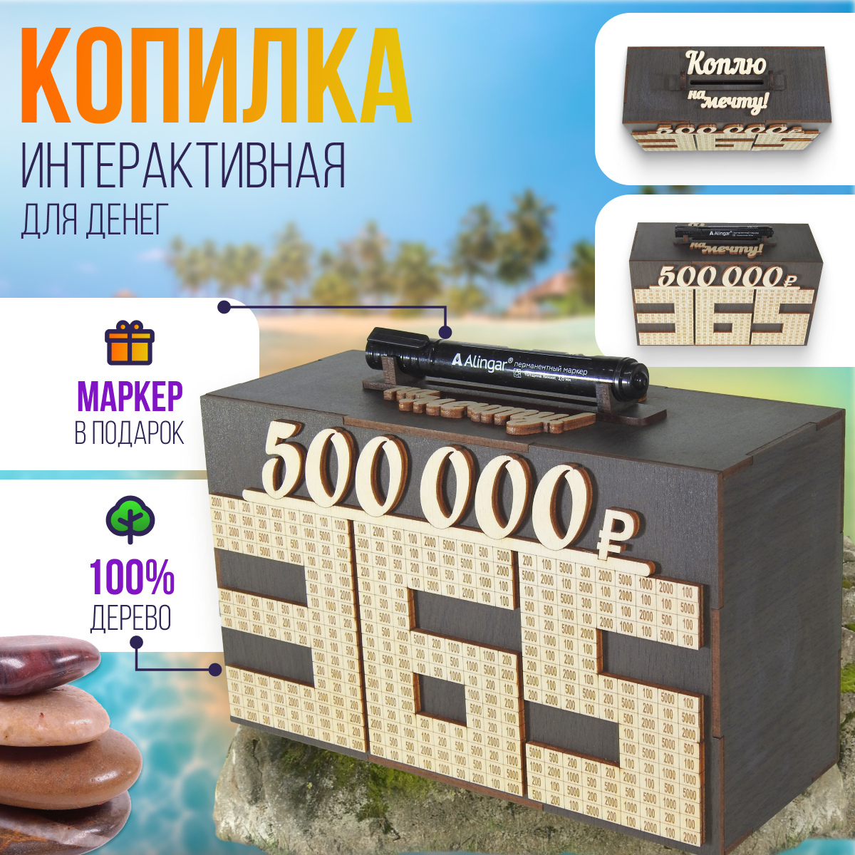 Копилка для денег из дерева 500000 за 365 дней информация: