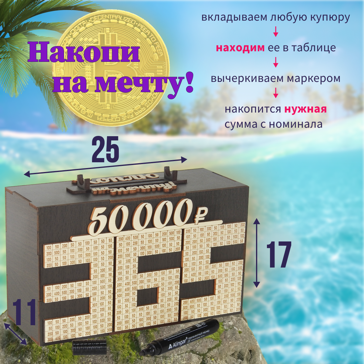 Копилка для денег из дерева 50000 за 365 дней информация: