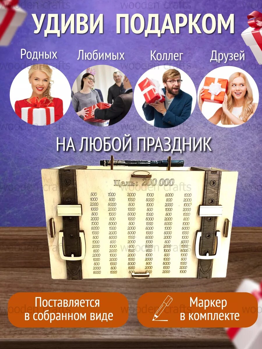 10 цен на Деревянная копилка сейф для денег