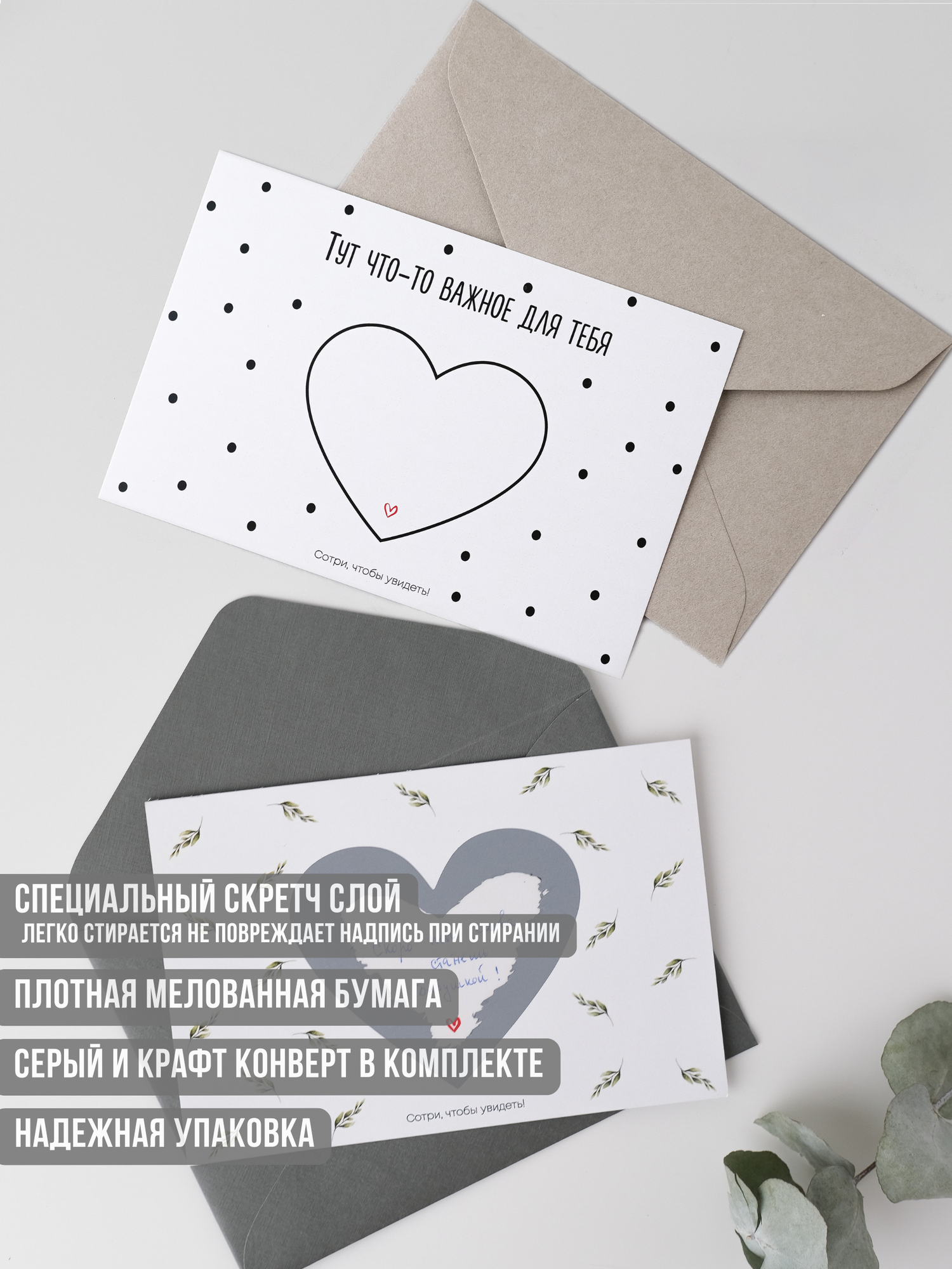Открытка с конвертом + скретч слой "Ваш текст" 2шт. информация:
