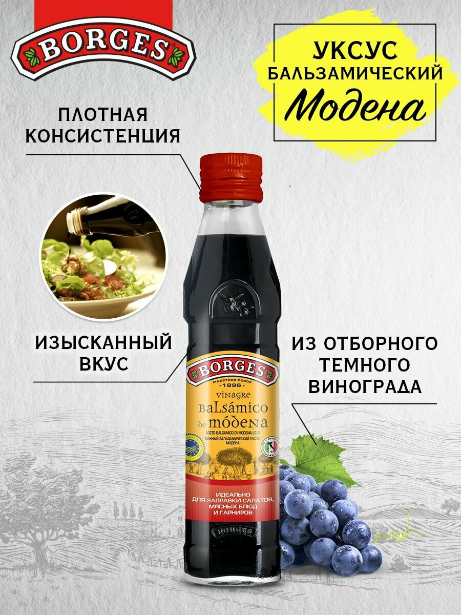 Мы выбрали 10 лучших цен на BORGES Уксус бальзамический Модена 250мл по 12 шт.. Перед тем как купить BORGES Уксус бальзамический Модена 250мл по 12 шт. посмотрите найденные предложения из Яндекс Маркета и других сайтов на основе XML фидов.