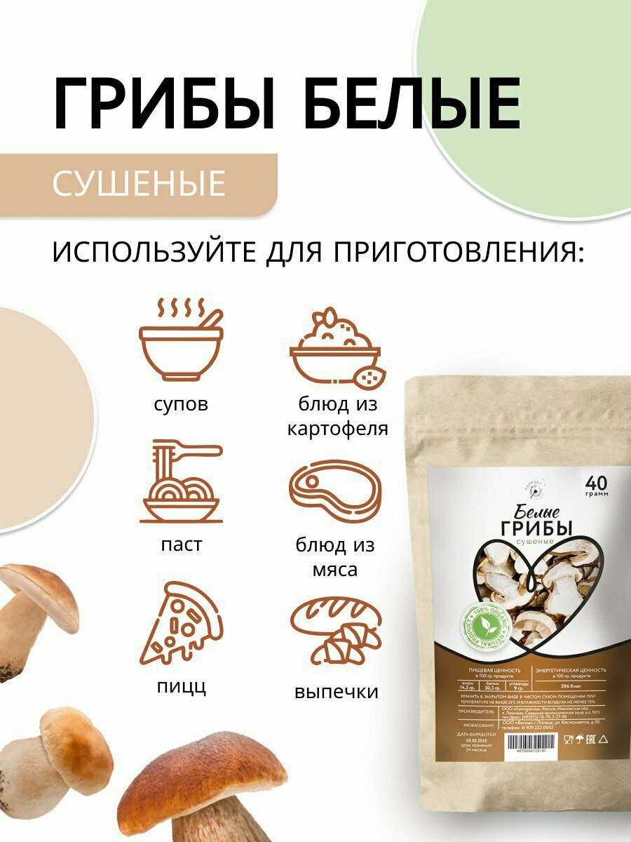 Дополнительная информация | Грибы белые сушеные, помол крошка |