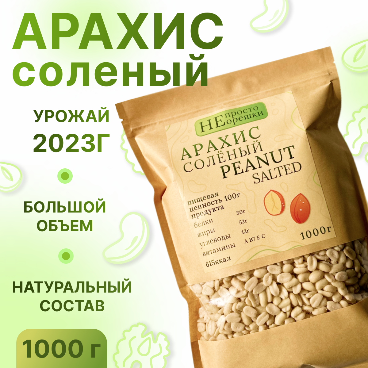10 цен на Арахис жареный, солёный, НЕ просто орешки, 1000гр