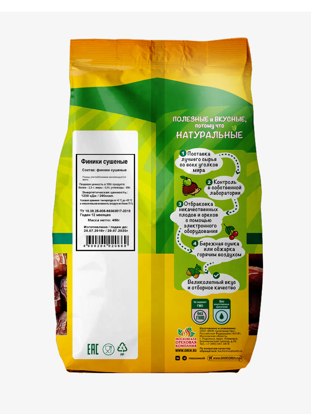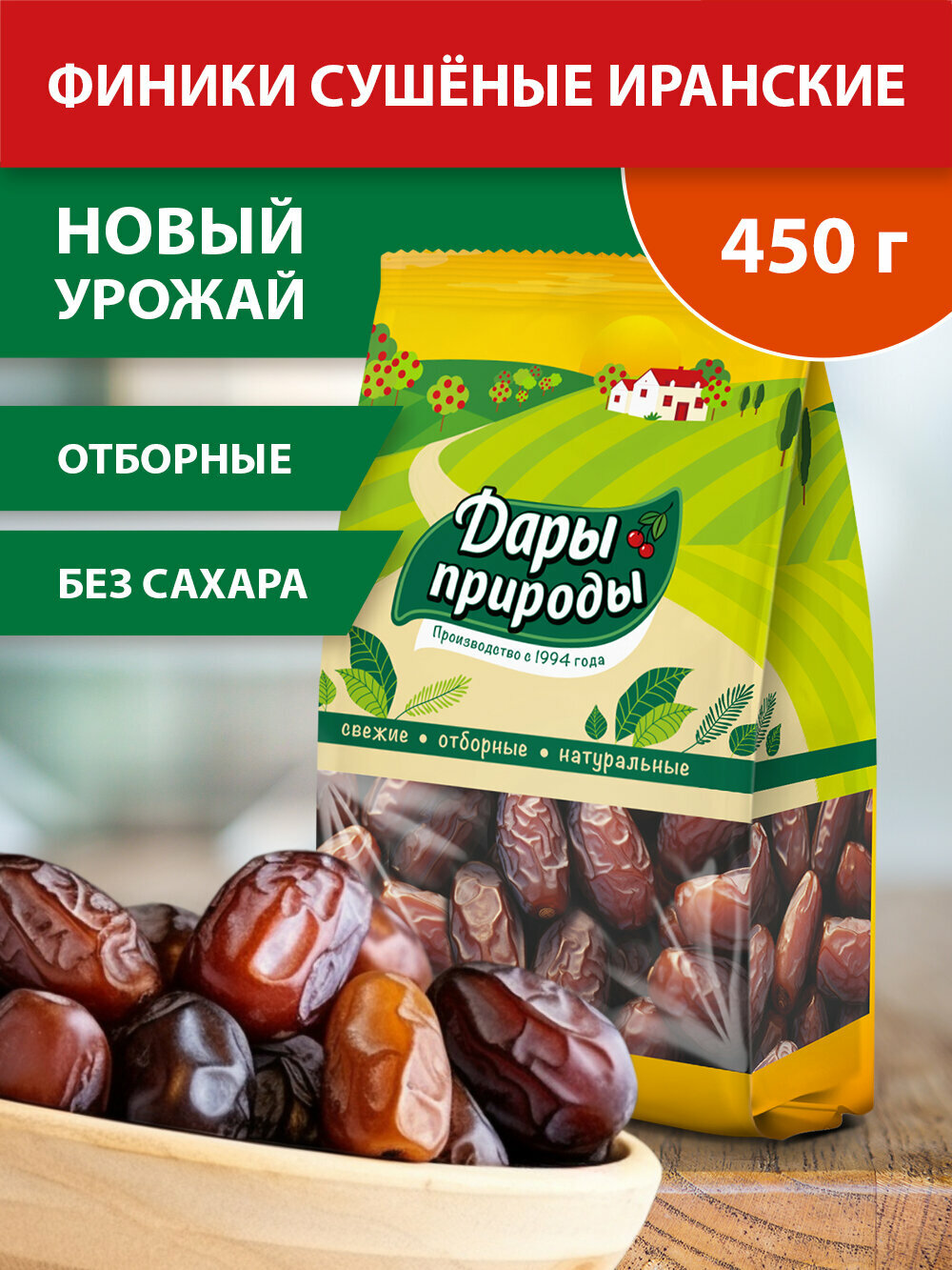 Финики Дары природы иранские сушеные, 450 г информация: