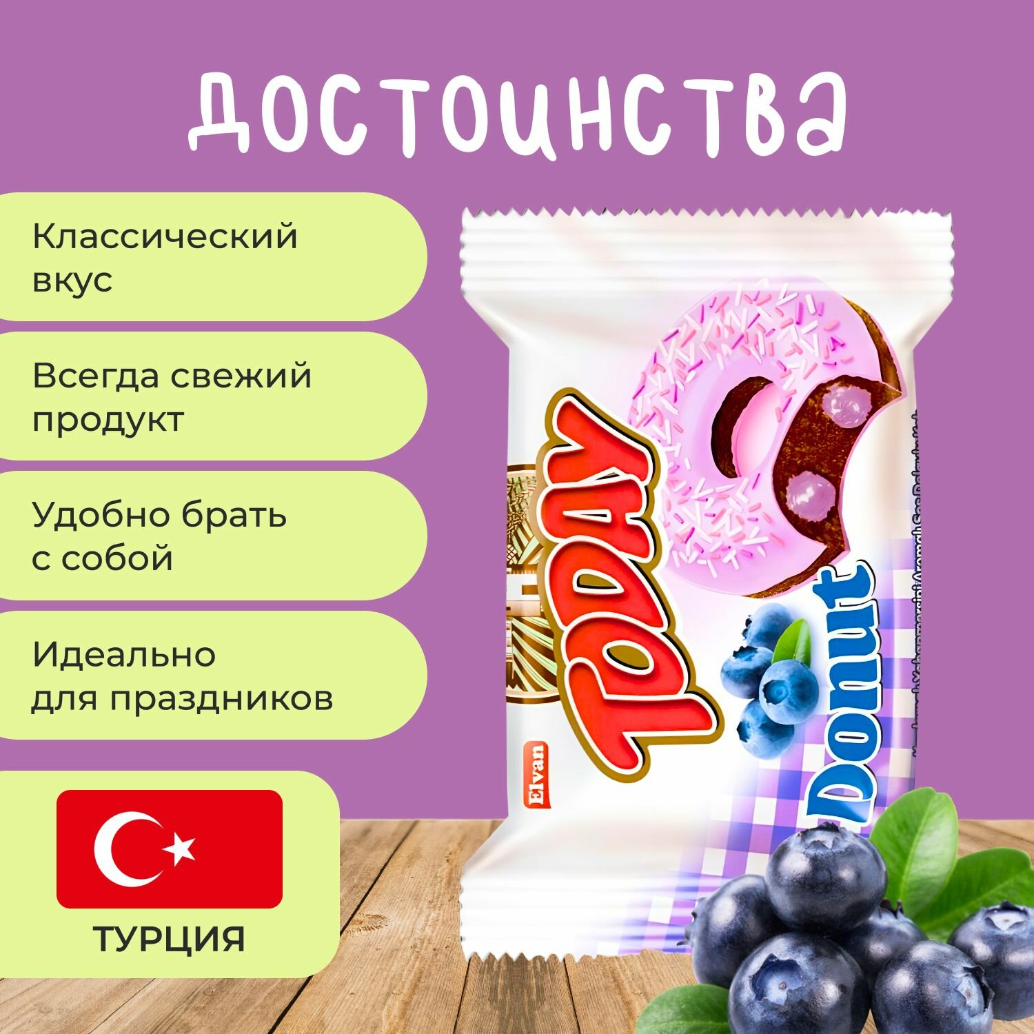 Отзывы на Today Донат с черничной начинкой 6 шт. х 40 гр. Пончик "Черничный" в индивидуальной упаковке