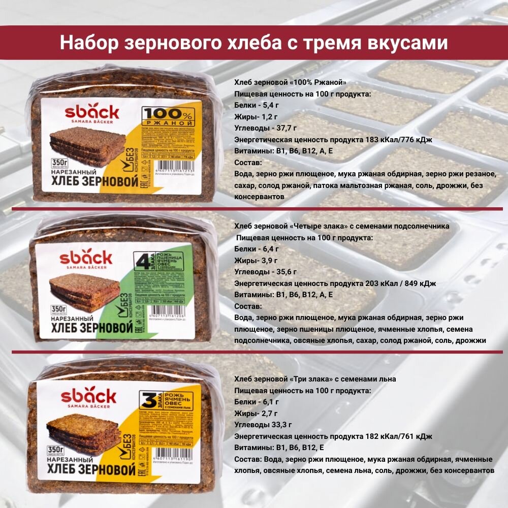 Хлеб зерновой ржаной с тремя вкусами, комплект 3 уп по 350 гр., Sback информация: