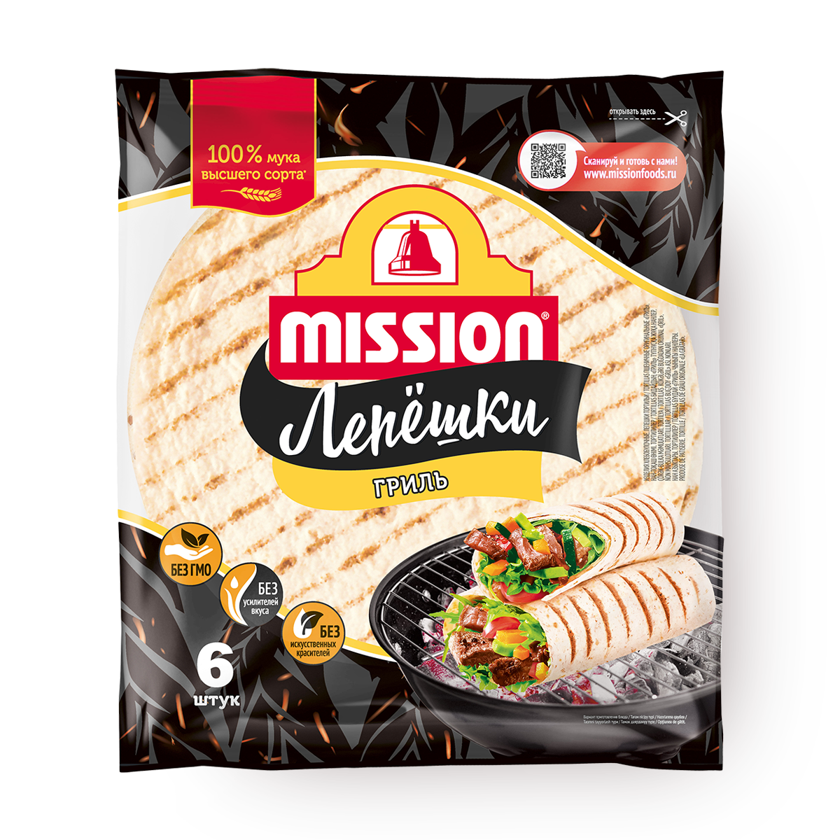 Лепешки пшеничные Mission Гриль, 20 см, 6 шт, 250 г информация: