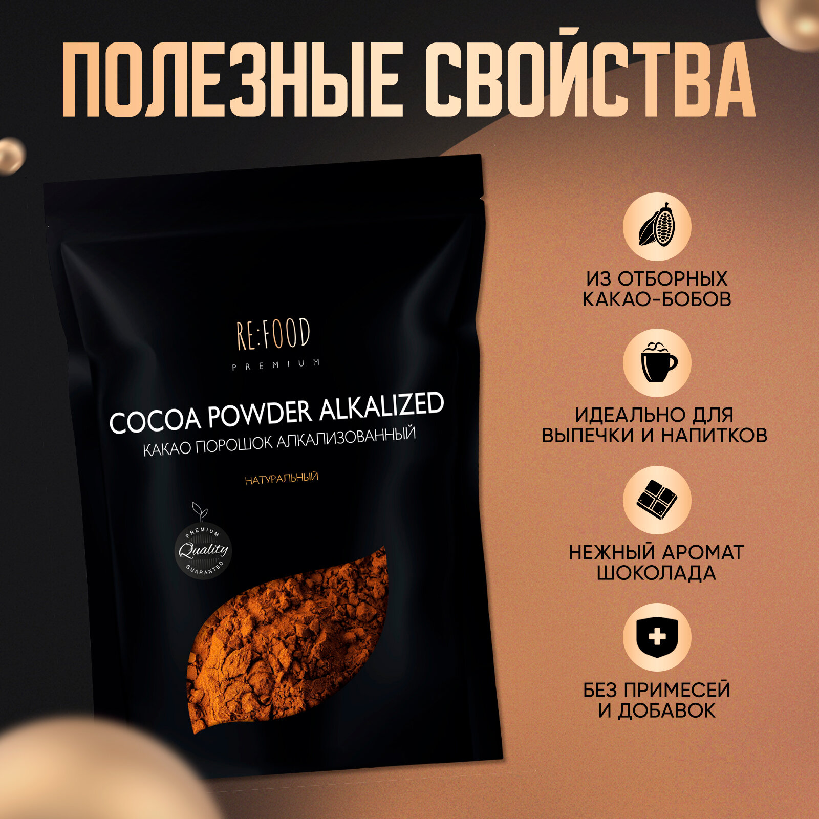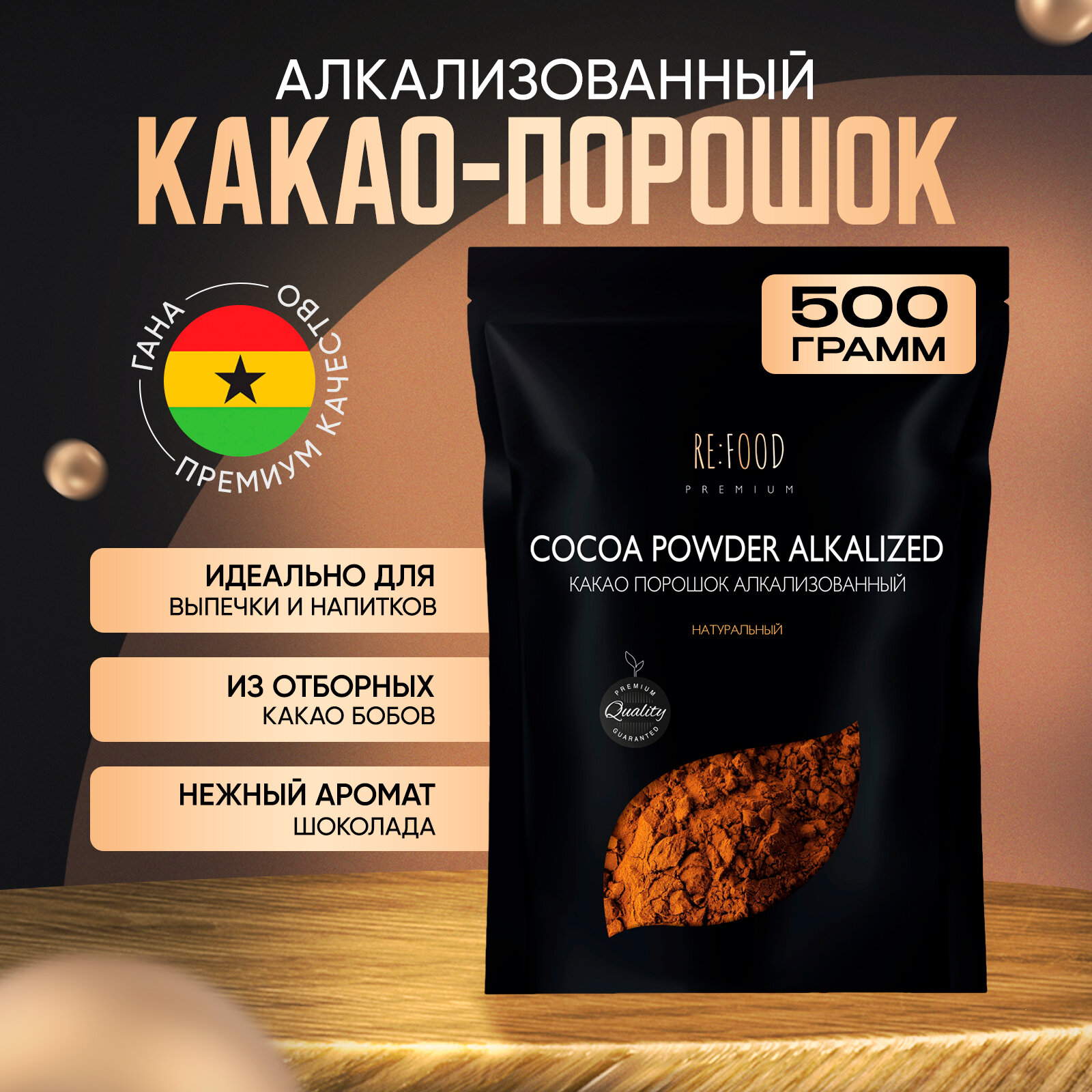 Какао - порошок натуральный алкализованный PREMIUM 500 грамм информация: