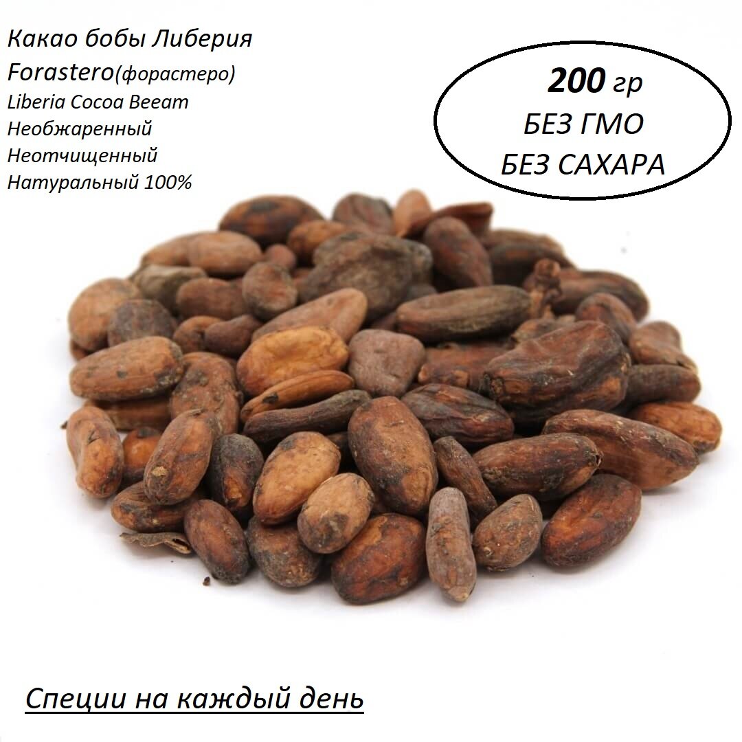 10 цен на Какао бобы натуральные необжаренные неочищенные, Либерия , 200 гр