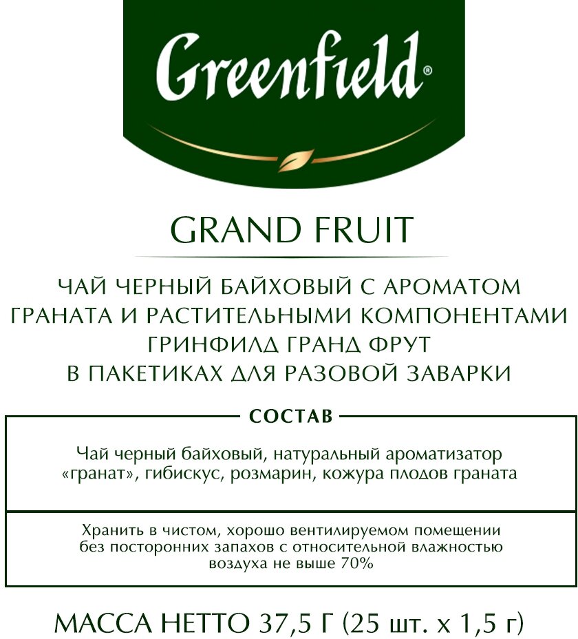 Чай GREENFIELD (Гринфилд) "Grand Fruit", черный, гранат-розмарин, 25 пакетиков в конвертах по 1,5 г, 1387-10 2 уп