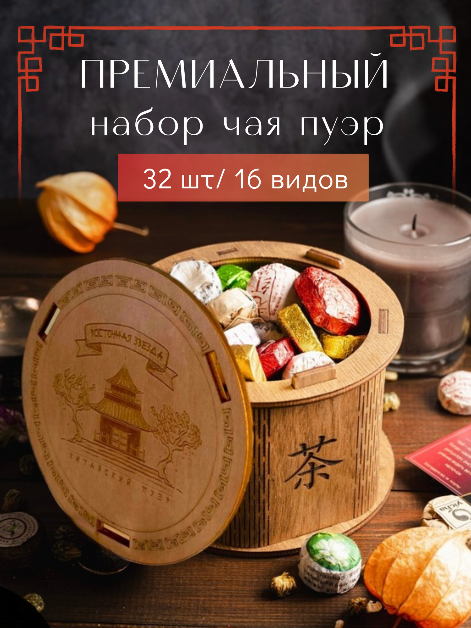 Чай Пуэр Шу черный прессованный набор зеленый китайский информация:
