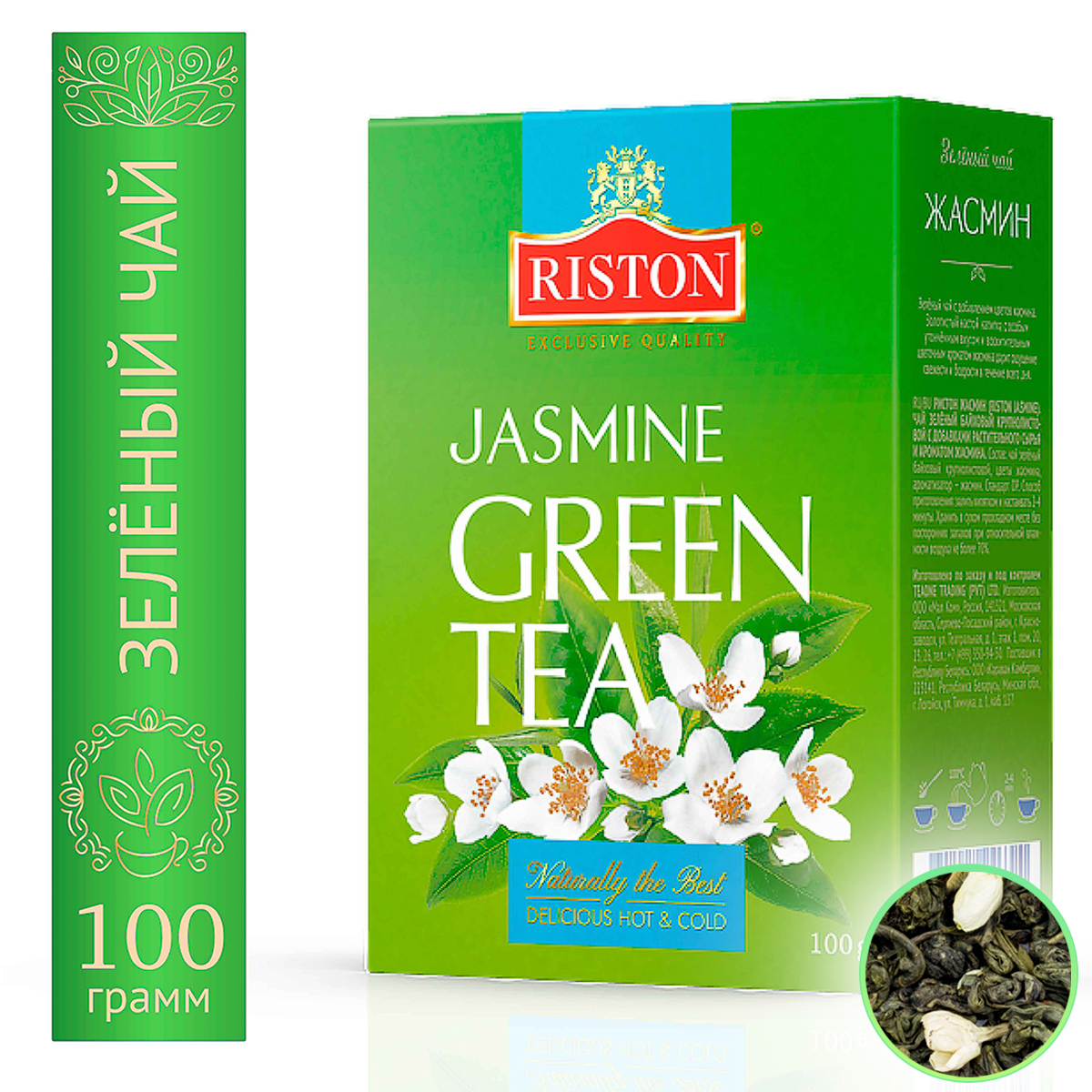 Чай зеленый листовой Riston Green Tea с Жасмином, 100 г информация: