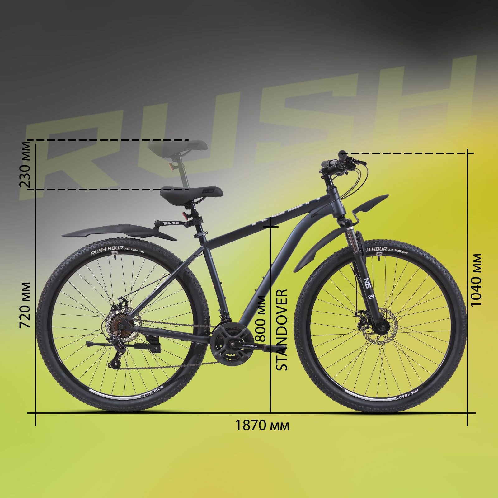Отзывы на Велосипед взрослый горный дисковый 29" RUSH HOUR RX 905 21 скорость черный рама 17" рост 160-175 см. скоростной мужчине спортивный с амортизацией найнер переключатель SHIMANO