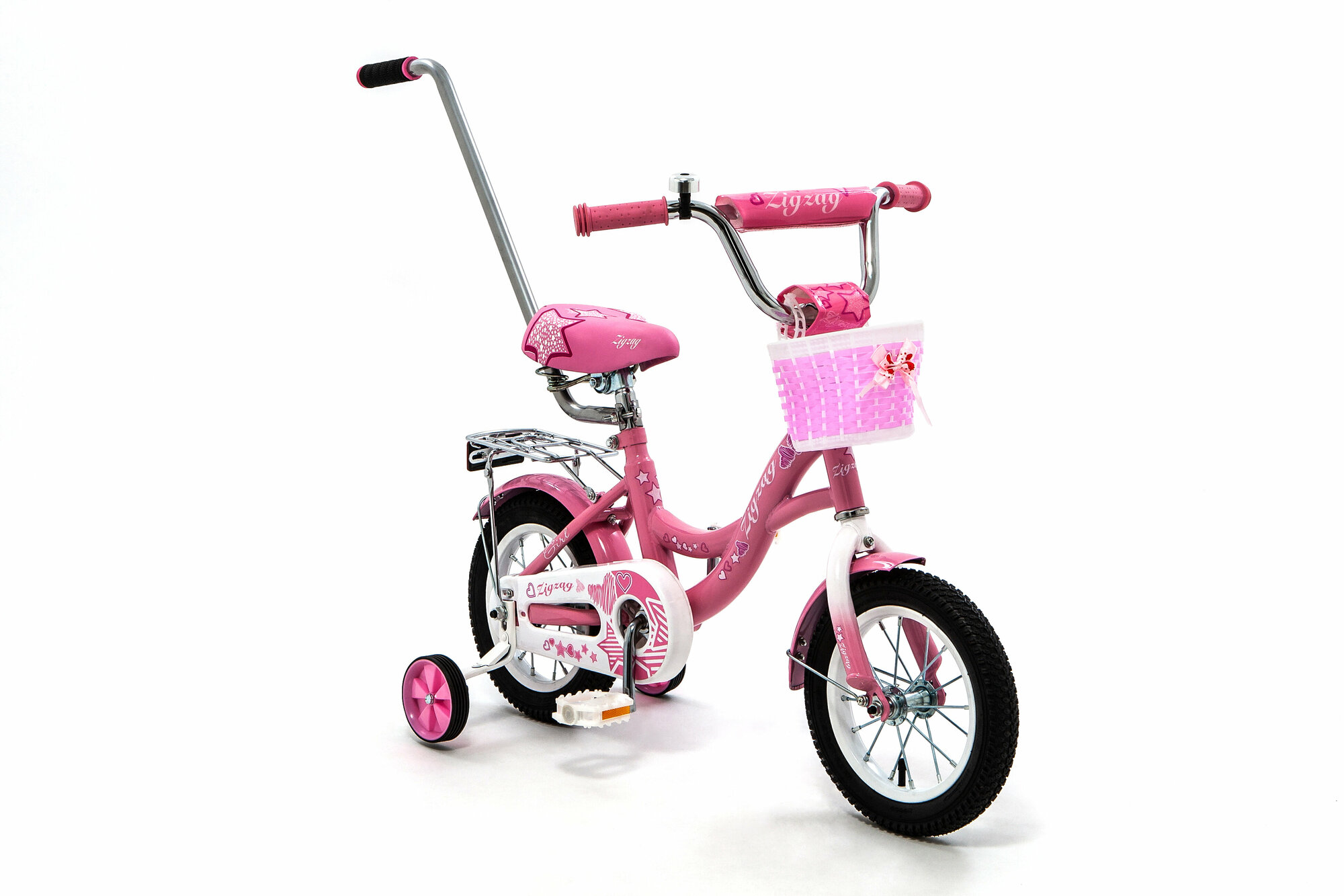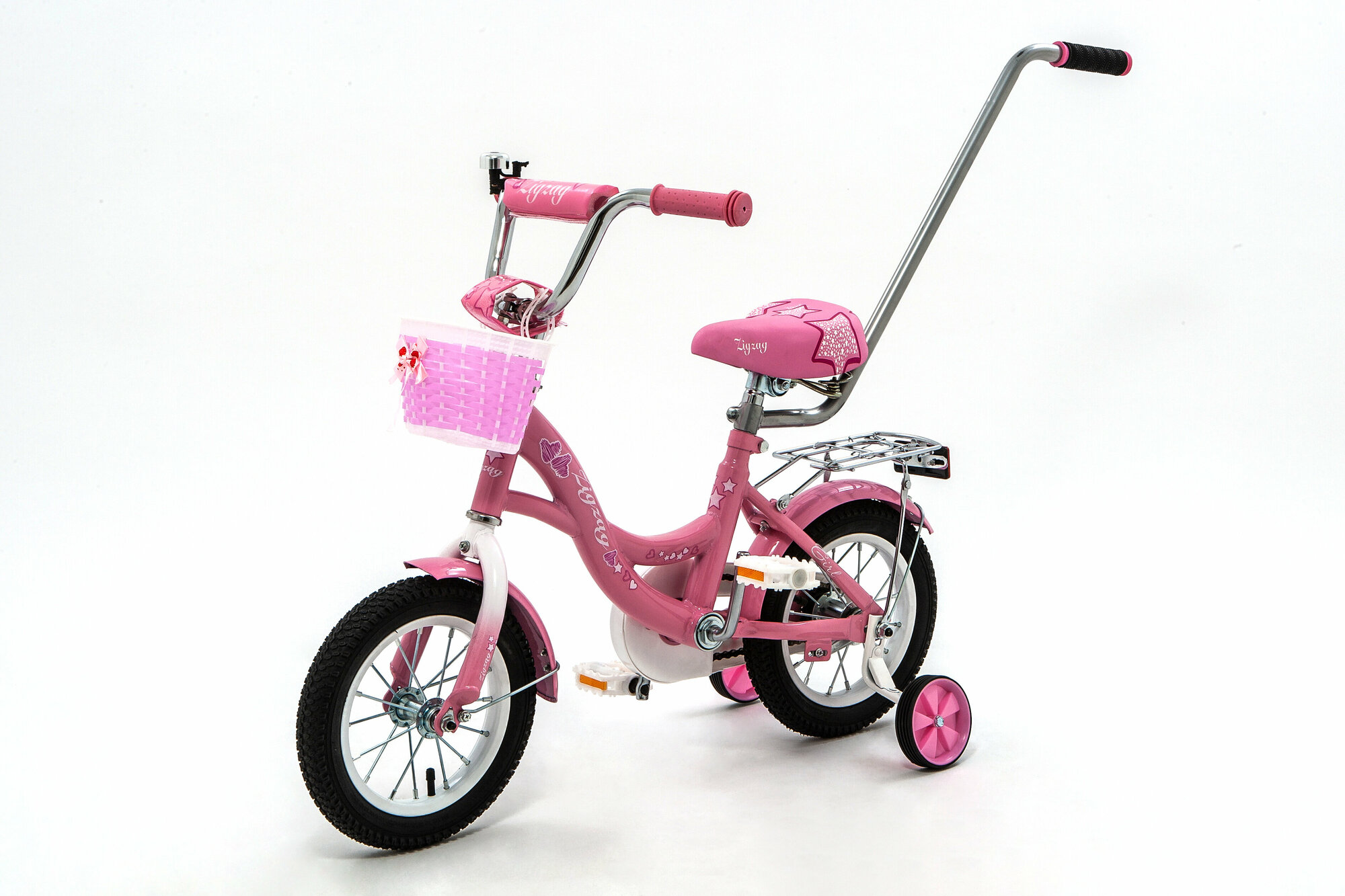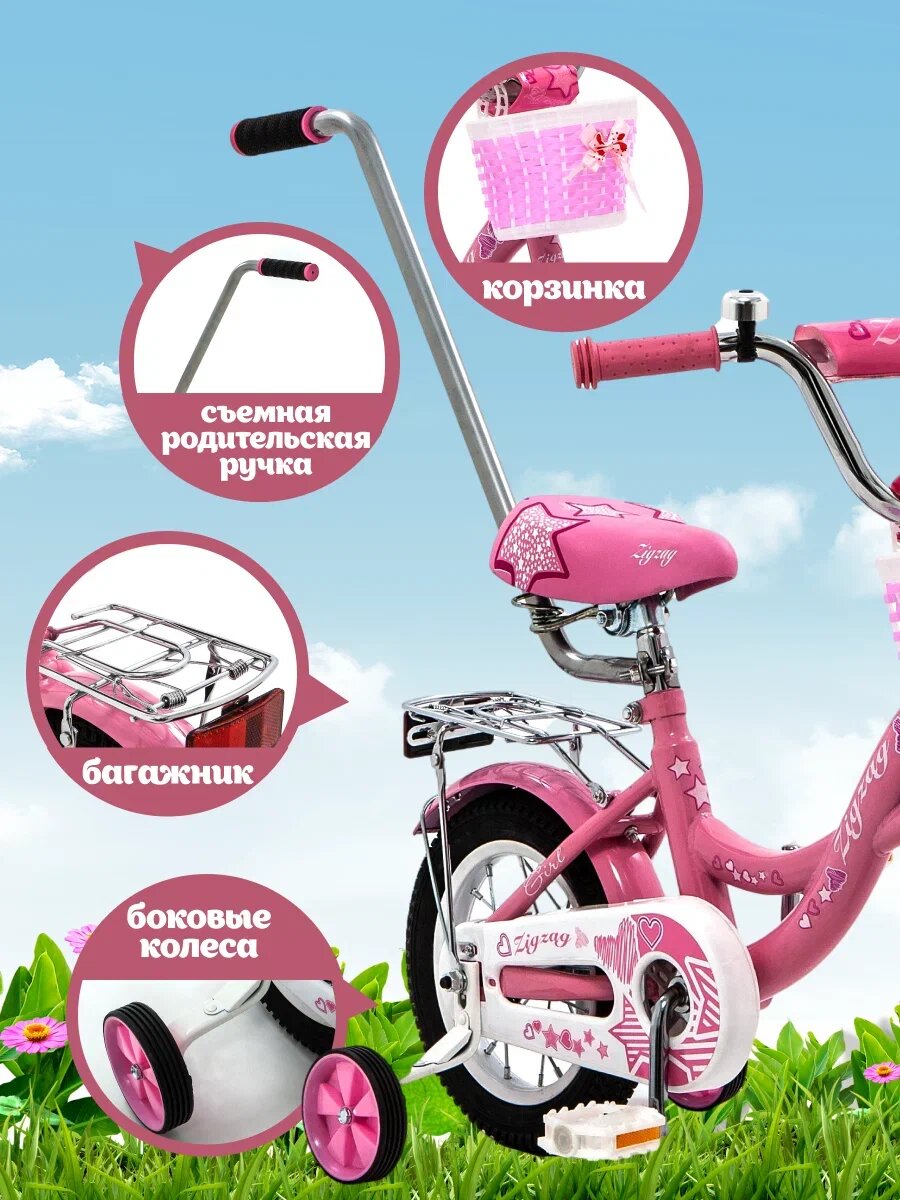 Велосипед детский 12" ZIGZAG GIRL розовый с родительской ручкой для детей от 2 до 4 лет информация: