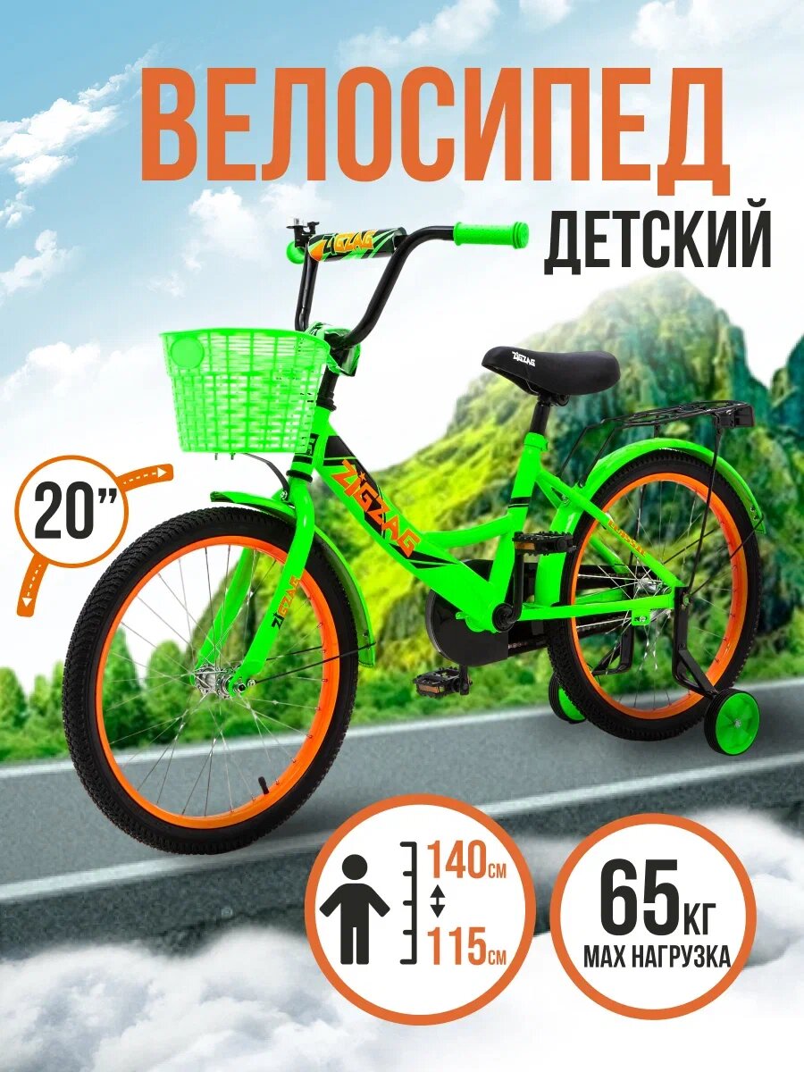 Отзывы на Велосипед детский двухколесный 20" ZIGZAG CLASSIC зеленый для детей от 6 до 9 лет на рост 115-140см (требует финальной сборки)