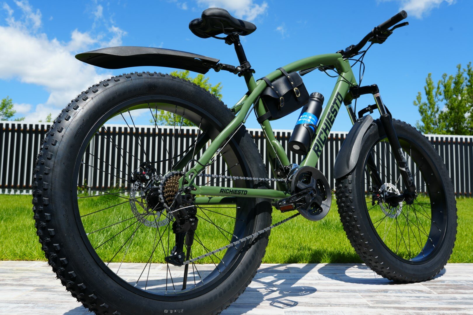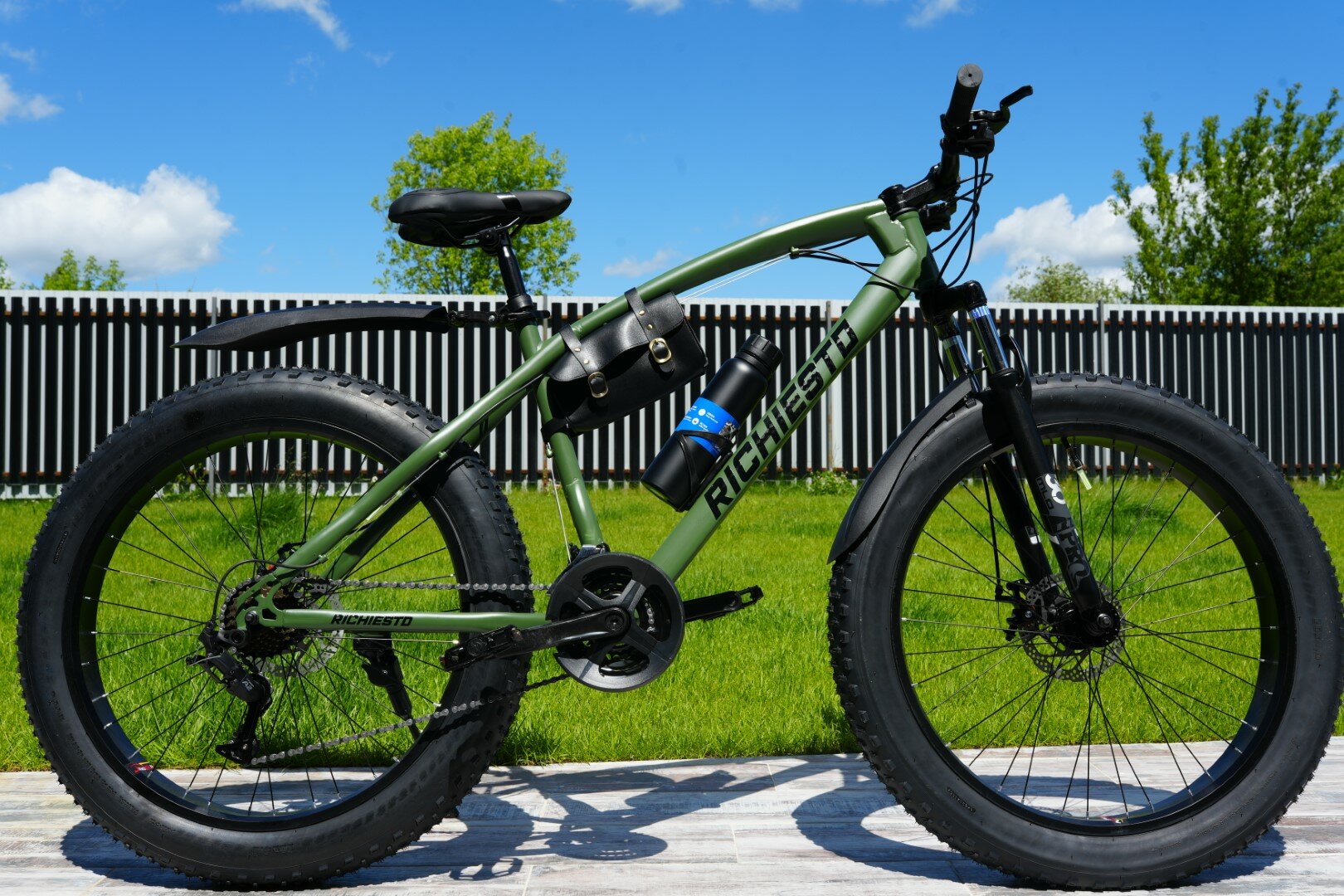 Отзывы на Велосипед Fatbike Richiesto 26" Фэтбайк взрослый/подростковый 20 рама Спортивный Вездеход На широких колесах, зеленый с черным