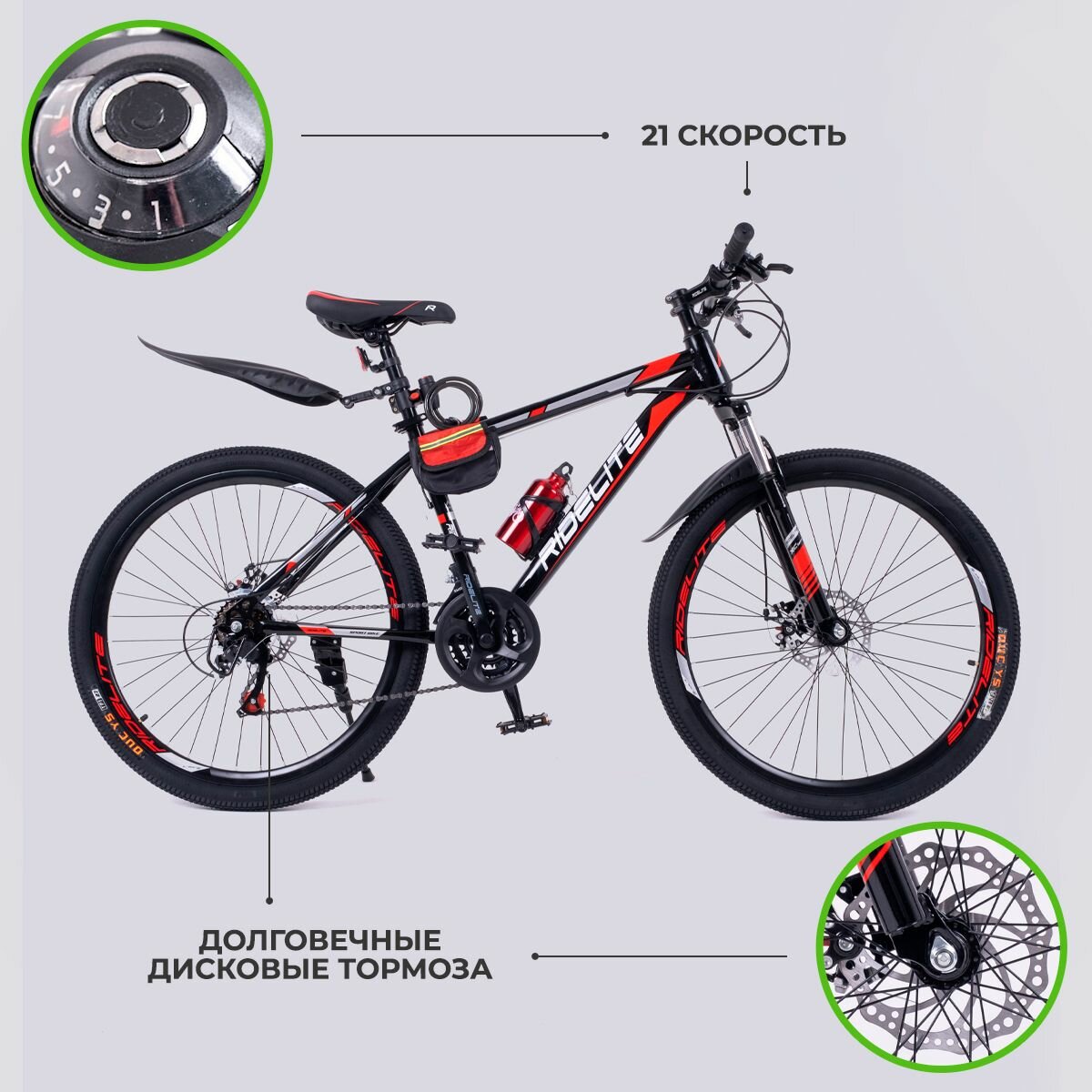 Отзывы на Велосипед взрослый / подростковый мужской / женский, гравийный горный 26", RIDELITE 21ск черно-красная рама 17", рост 140-180 см
