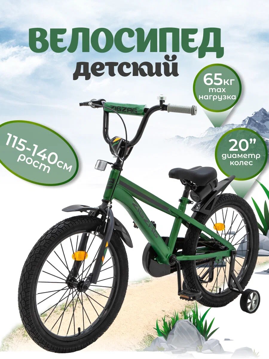 Отзывы на Велосипед детский 20" ZIGZAG CROSS зеленый для мальчиков и девочек от 6 до 9 лет на рост 115-140см 2024