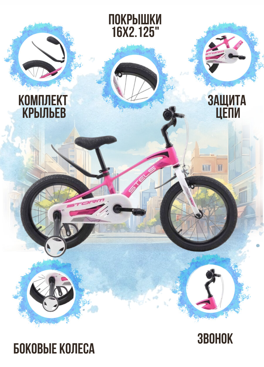 Детский велосипед Stels 16" Storm KR Z010 2023 года розовый информация: