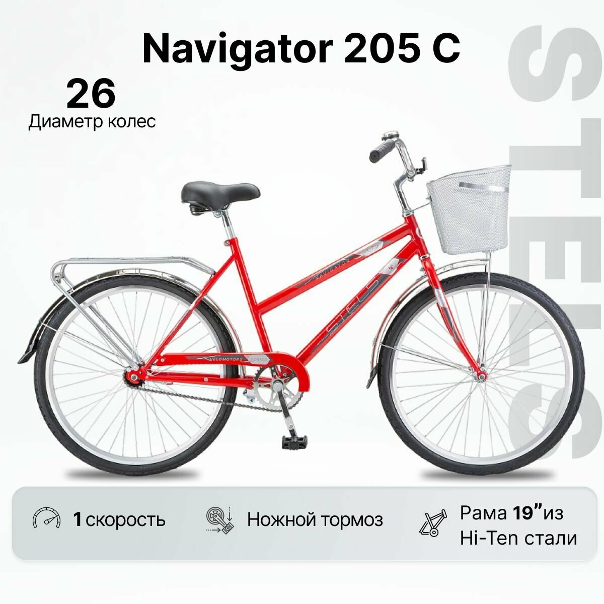 Велосипед Stels Navigator-205 C 26 Z010 рама 19, цвет красный, с корзиной информация: