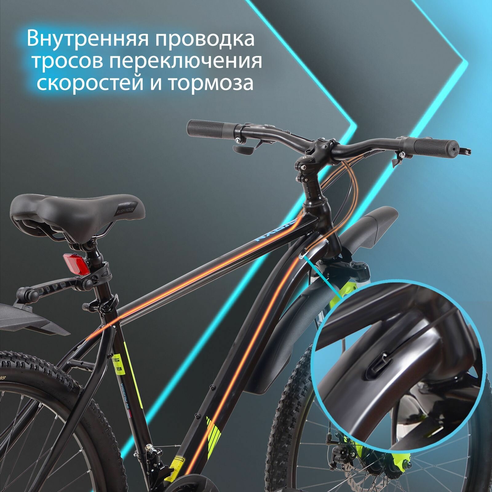 Велосипед горный дисковый 26" рост 160-175см 21 скорость черный рама 18" велик взрослый переключатель SHIMANO скоростной RUSH HOUR NX 615 информация: