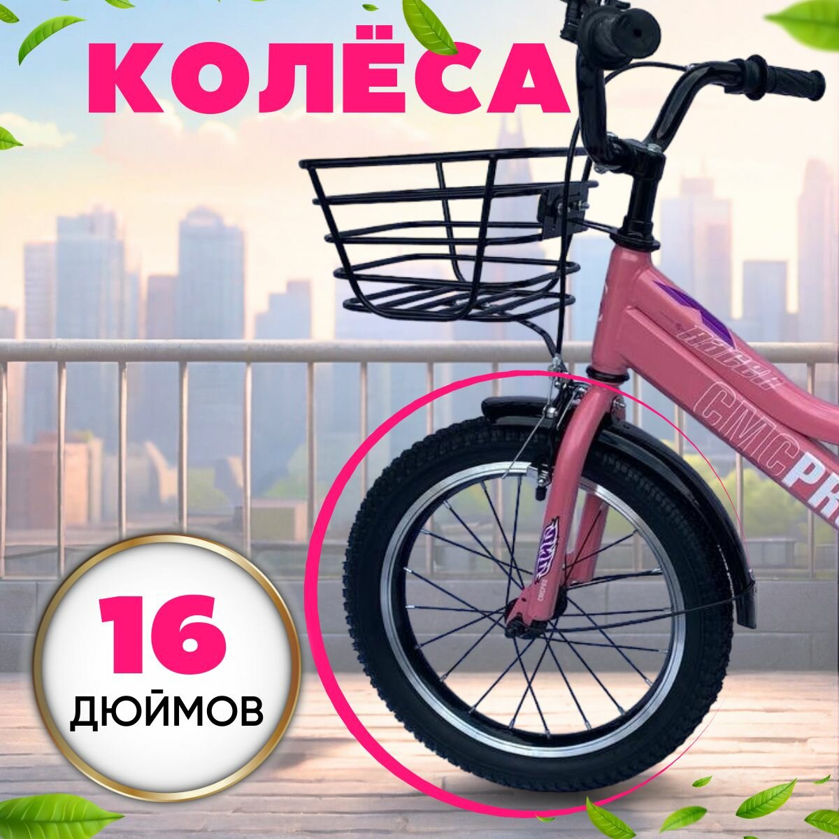 Велосипед детский 16 дюймов четырехколесный с корзиной, для детей от 4-х лет ростом до 130 см. информация: