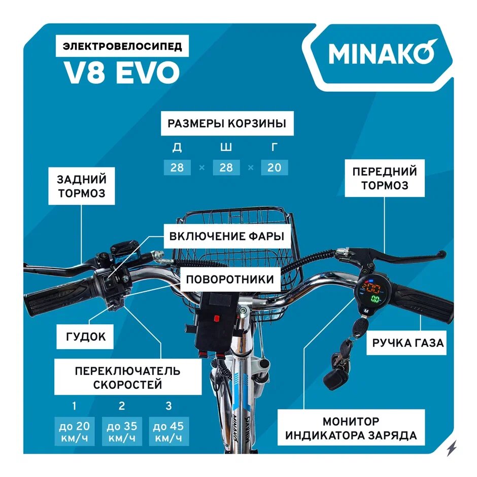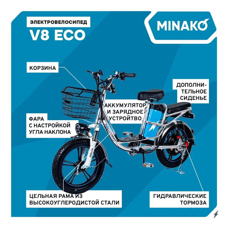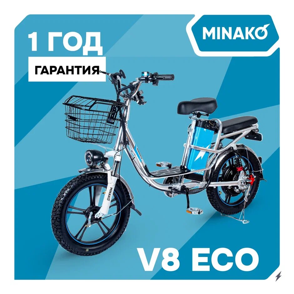 Электровелосипед MINAKO V8 ECO 500W, 60/12Ah, 2024 год, Белый информация: