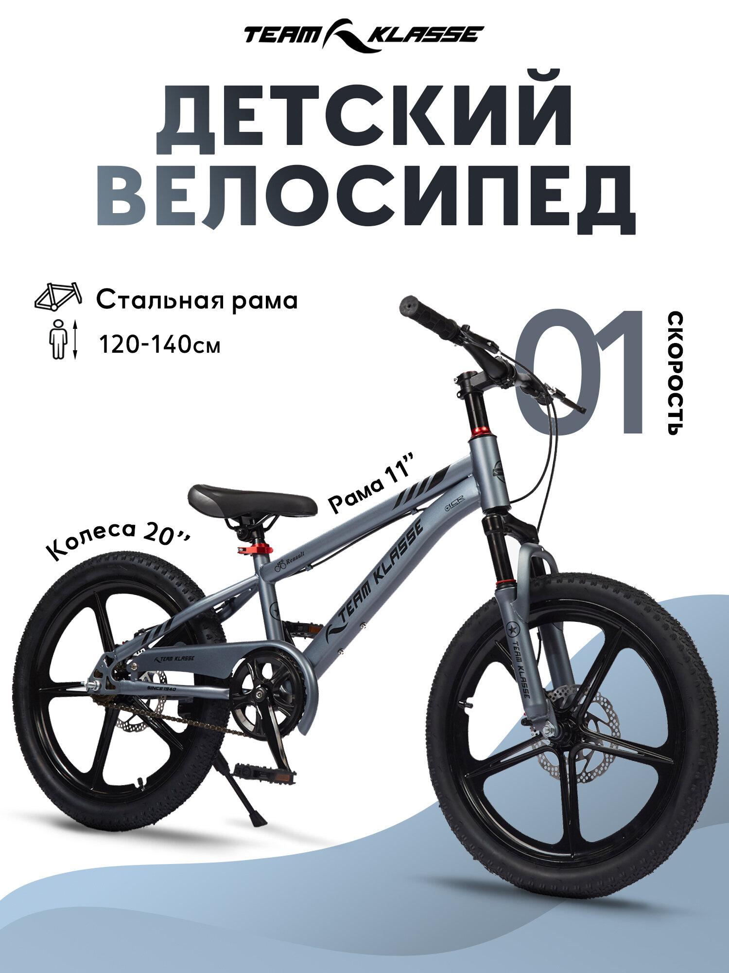 Горный детский велосипед Team Klasse F-1-B, серый, диаметр колес 20 дюймов информация: