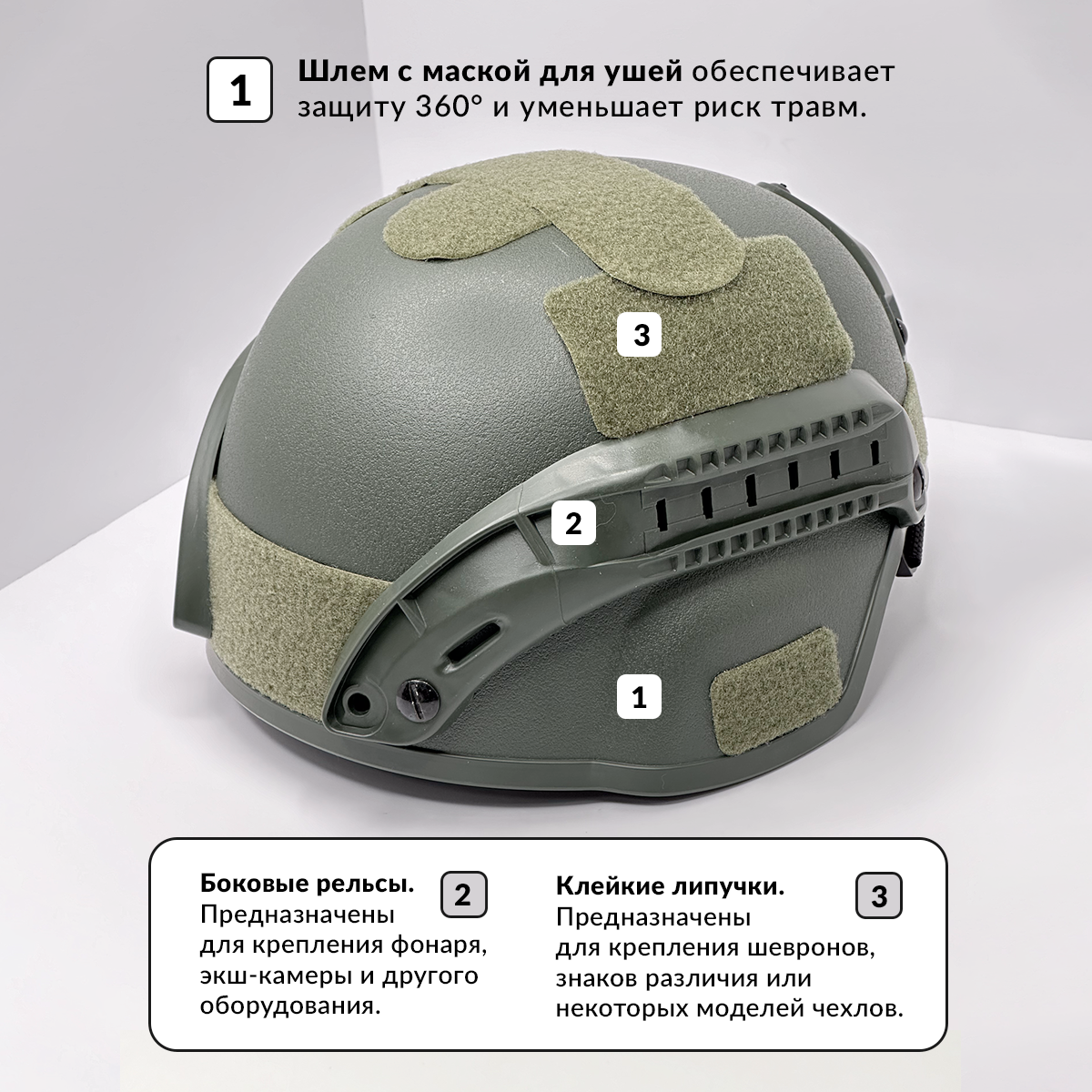 Шлем страйкбольный с маской и очками, набор информация:
