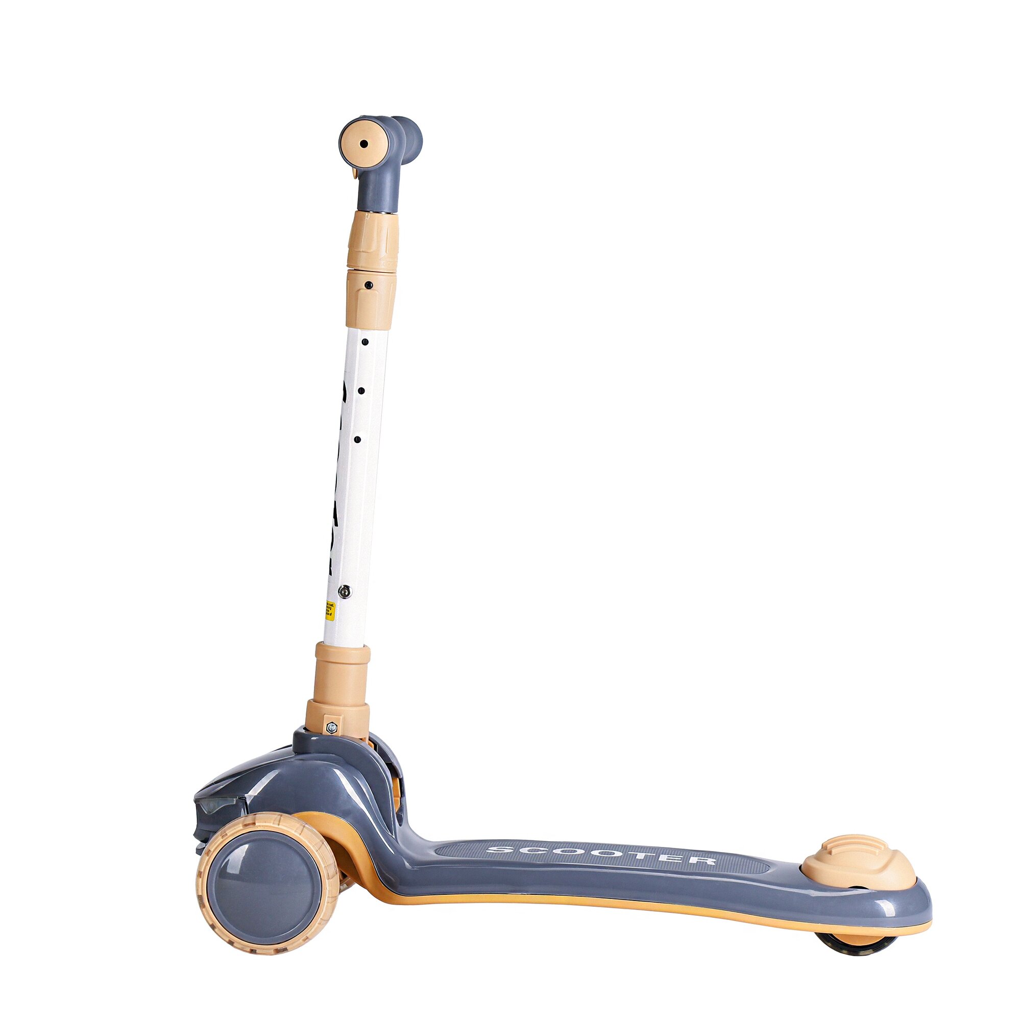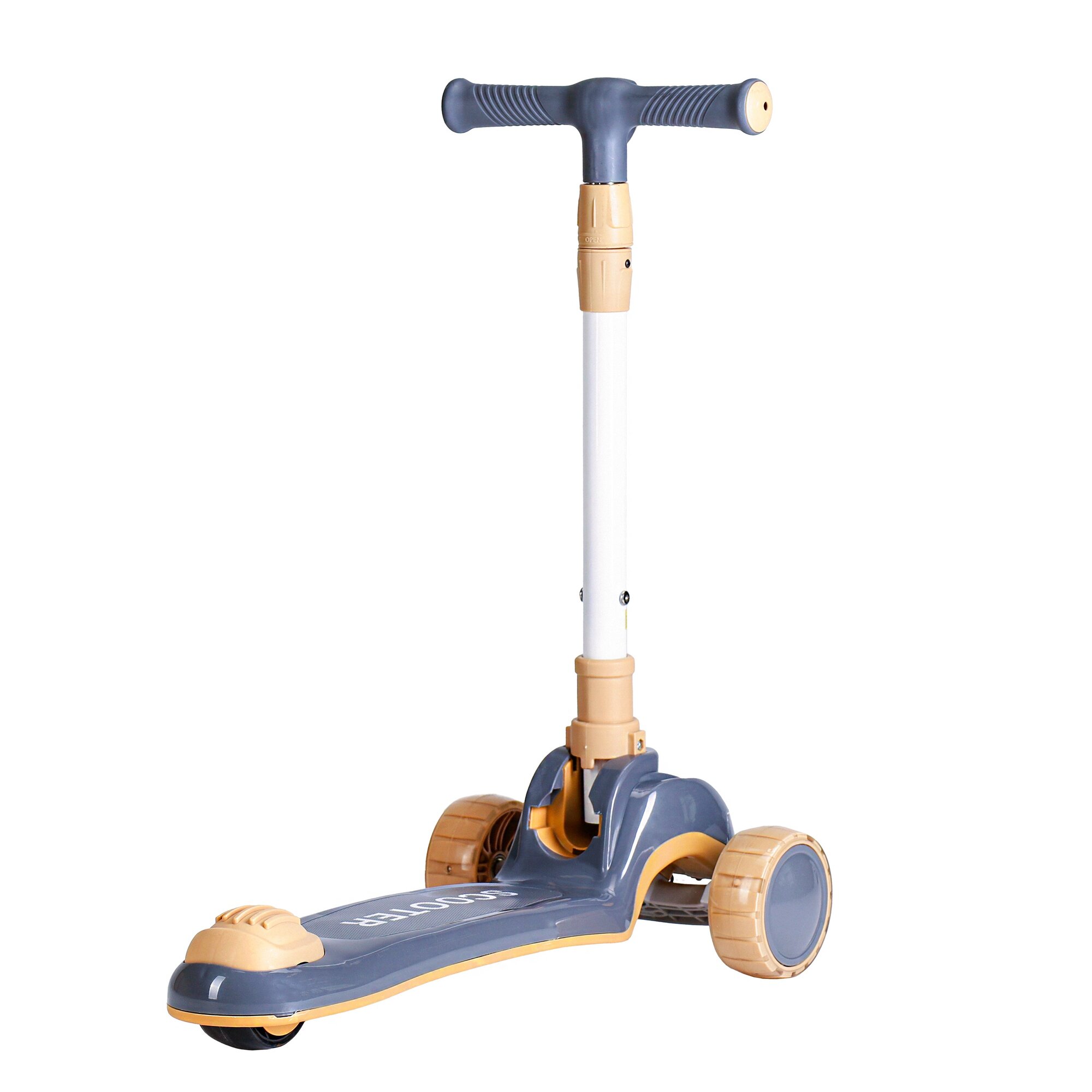 Самокат с фарами и музыкой трехколесный SCOOTER, складная ручка, светящиеся PU колеса 110 и 80 мм., до 50 кг., ABEC 7, серый / 1 шт. информация: