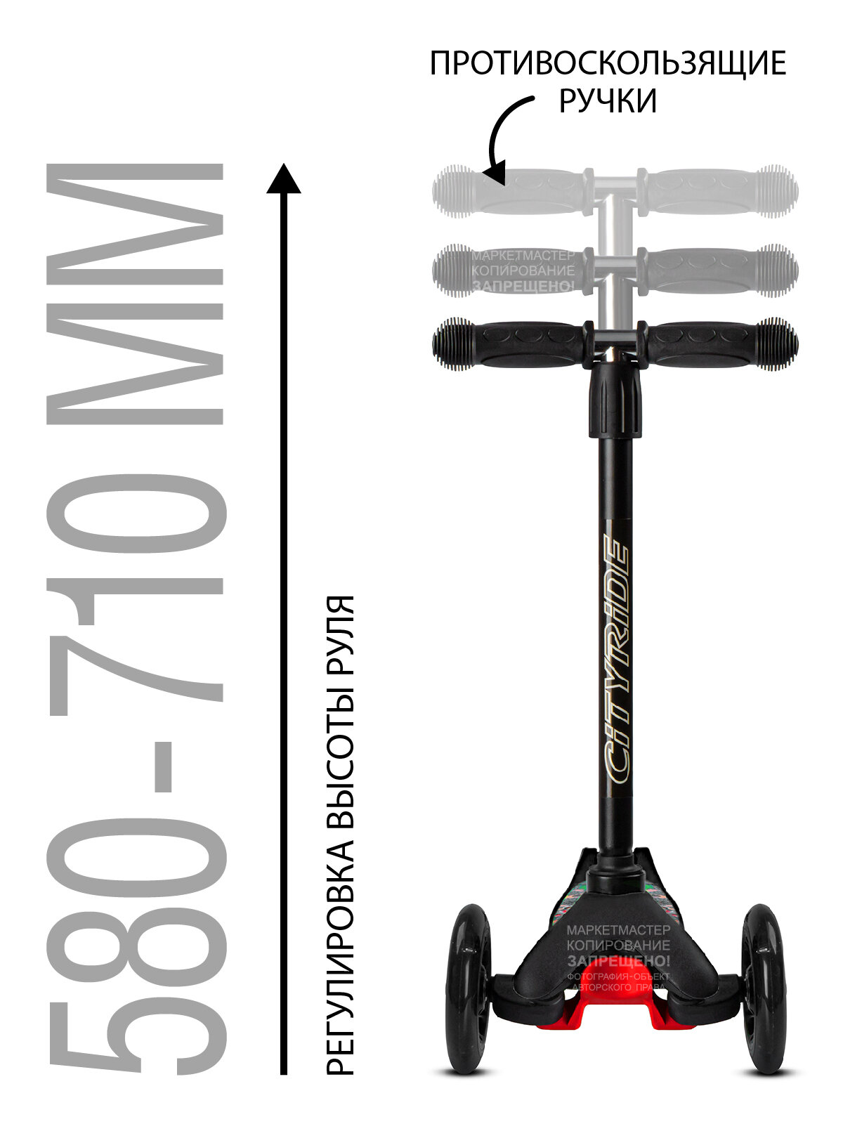 Самокат детский трехколесный ТМ CITYRIDE, колеса PU 120/76, руль телескопический/металлический, черный, CR-S4-HED информация: