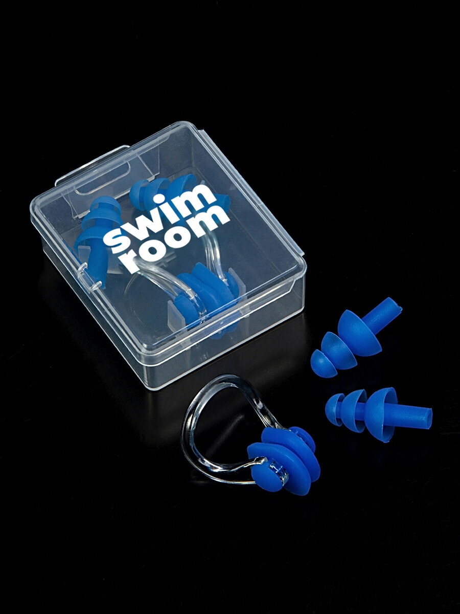 Комплект беруши и зажим для носа для плавания и бассейна SwimRoom “Earplugs and nose clip”, цвет синий информация: