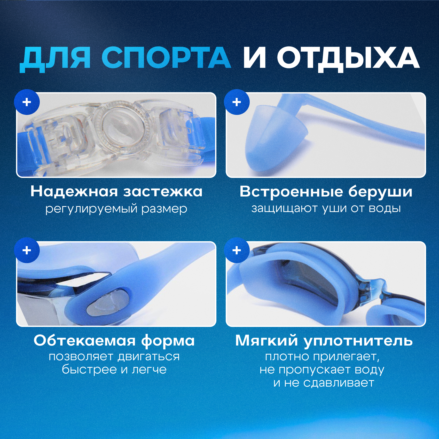 Очки для плавания, взрослые с берушами, цвет синий информация: