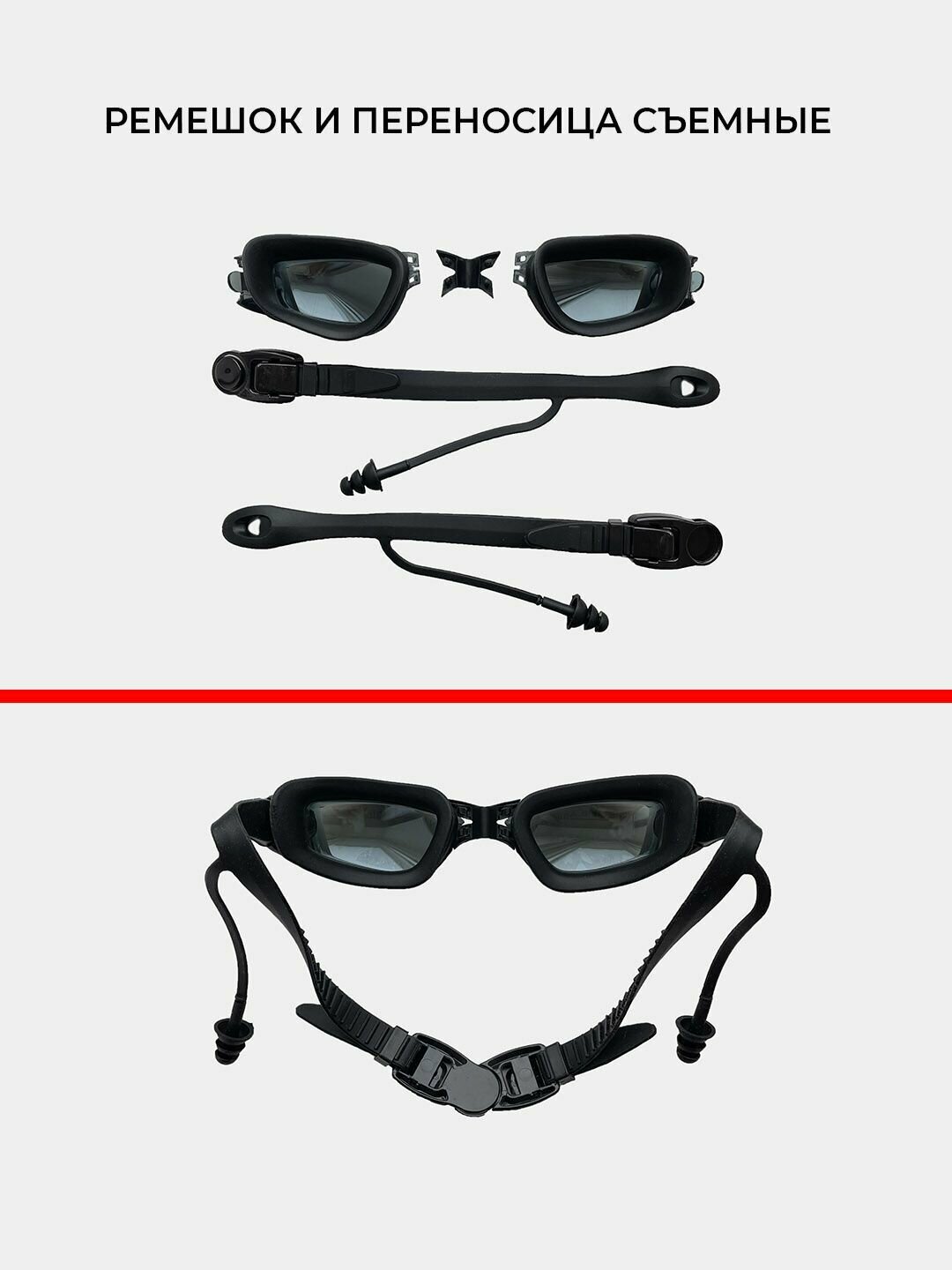 Очки для плавания, взрослые с берушами, цвет черный информация: