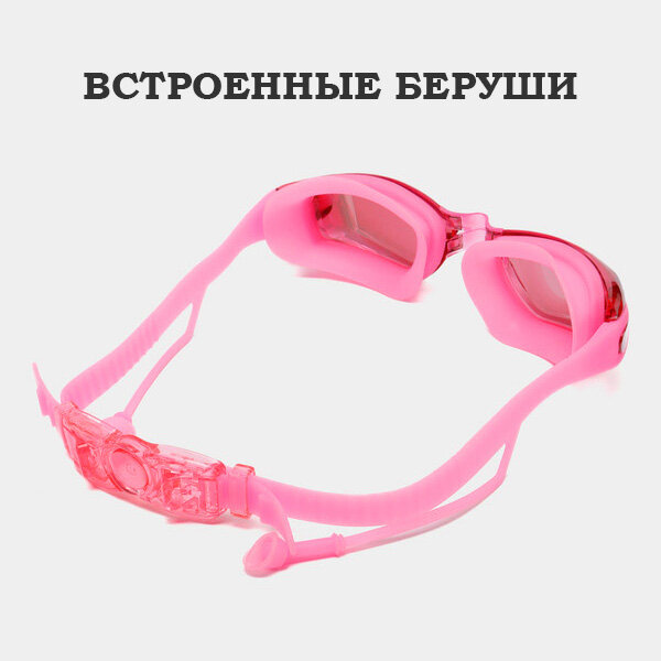 Очки для плавания, взрослые с берушами, цвет розовый информация: