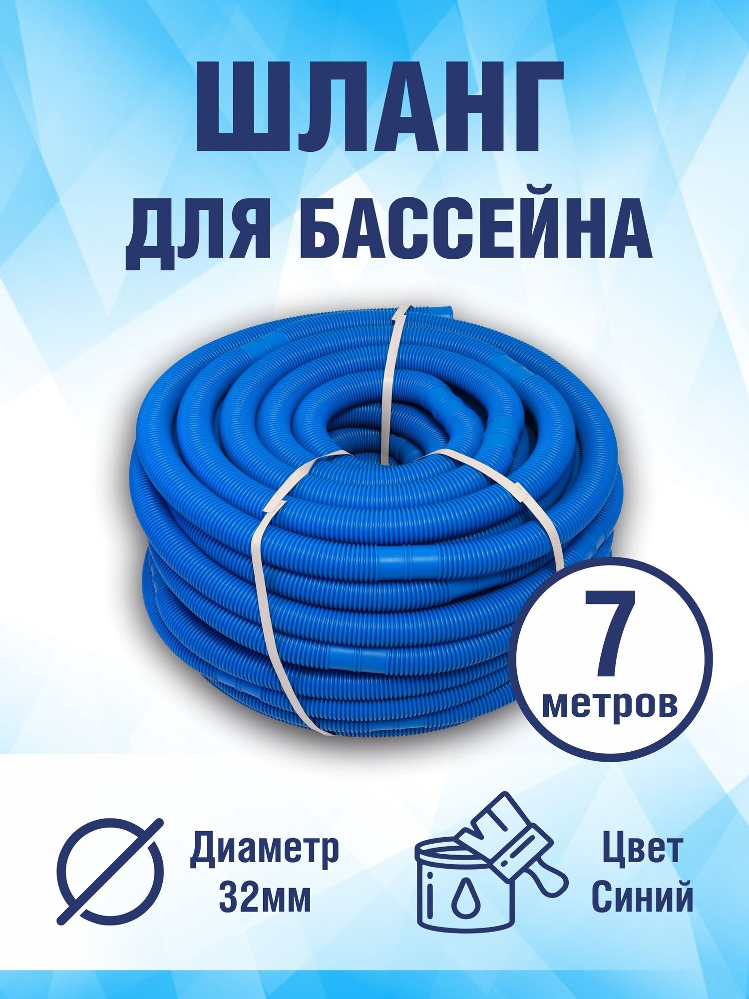 Шланг гофрированный для бассейна 32 мм, длина 7 метров. Цвет голубой информация: