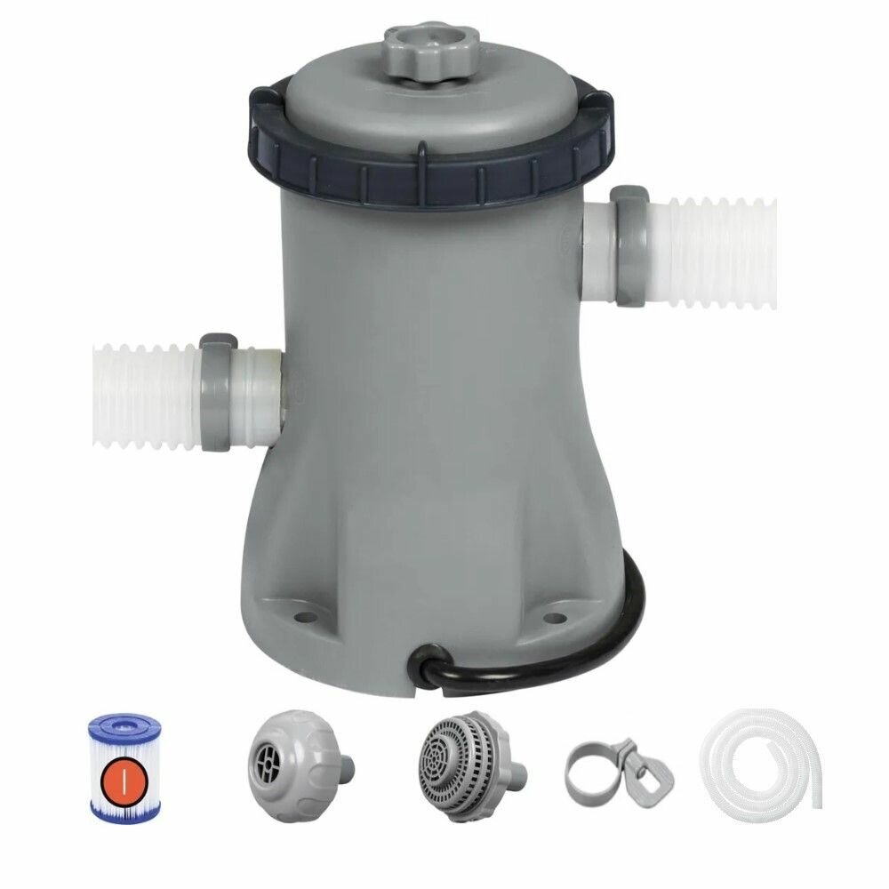 Фильтр-насос Bestway 1249 л/ч, тип картриджа (I) (Гофрированный шланг 150 см, фильтр, хомут - 4 шт, форсунка - 2 шт / 16) информация: