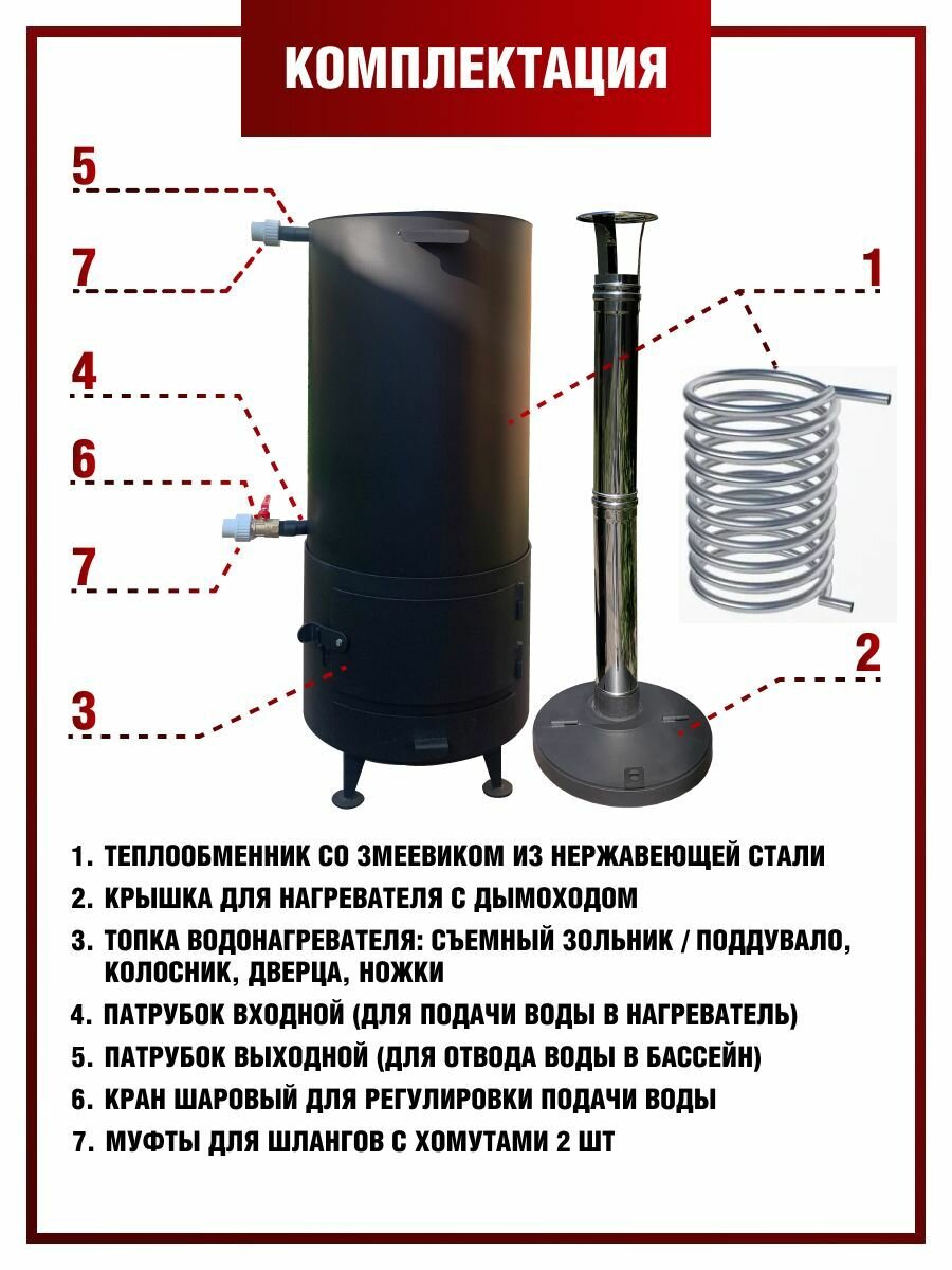 Отзывы на Печь для бассейна, водонагреватель на дровах TOPMANGAL COIL со змеевиком, с крышкой и дымоходом (топка 3 мм)